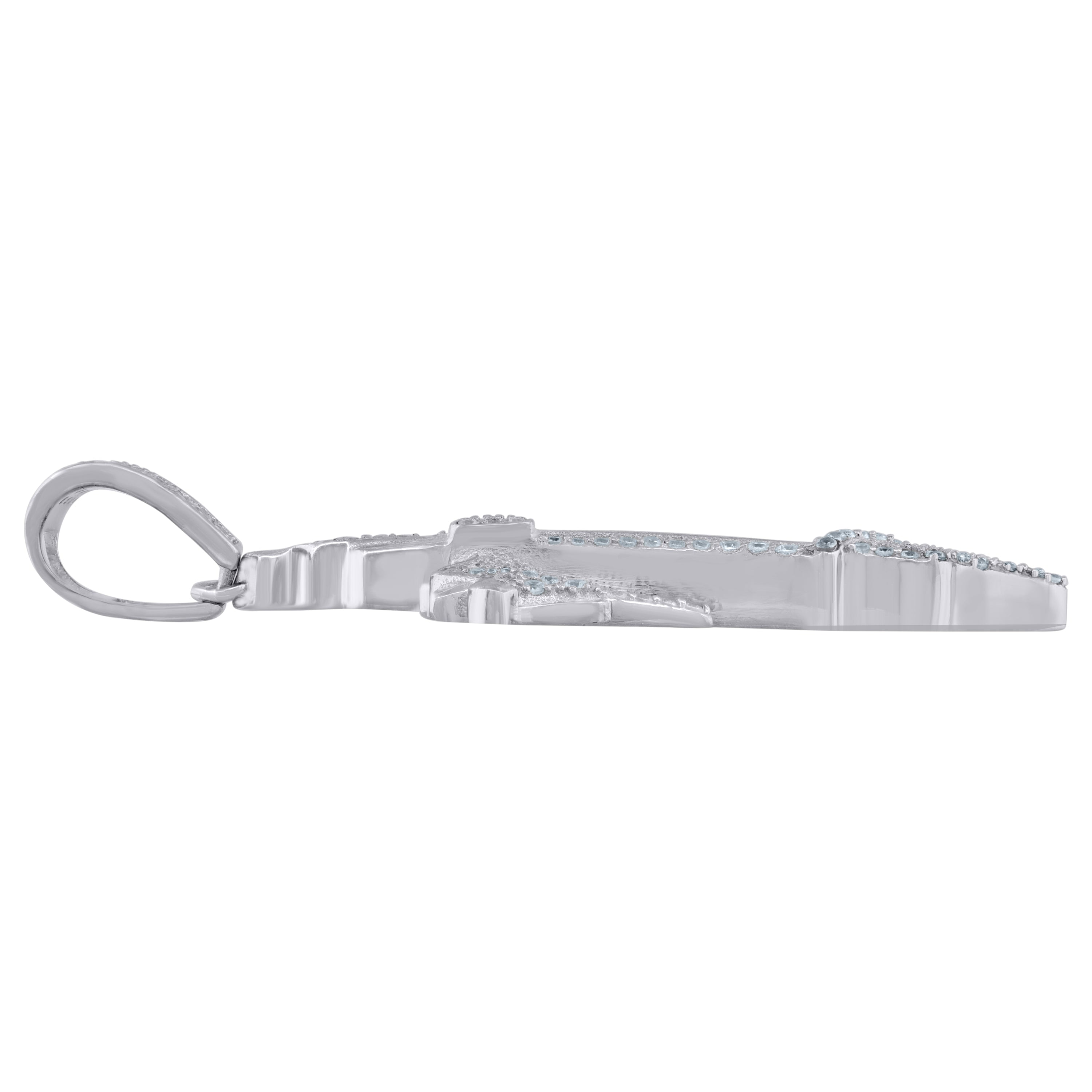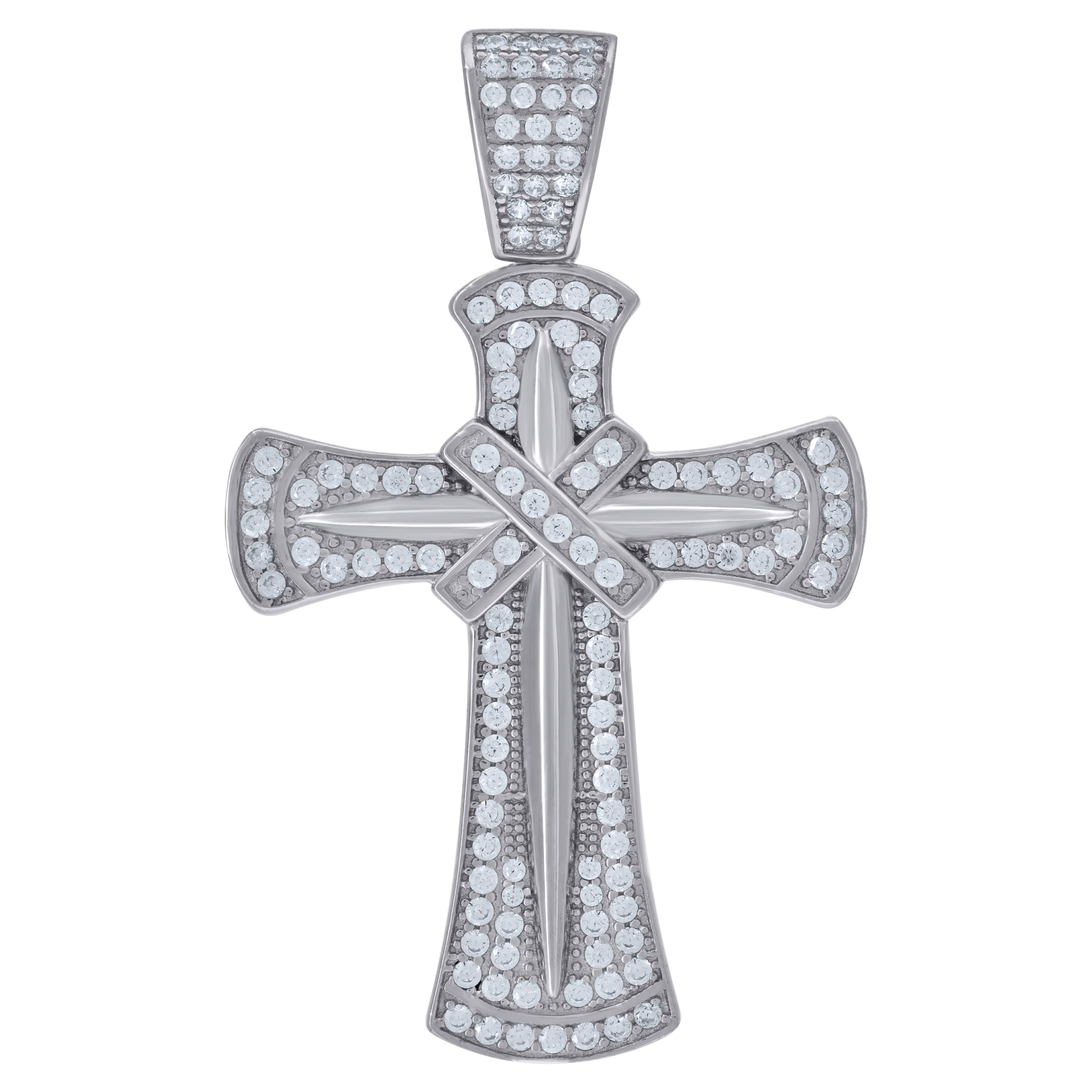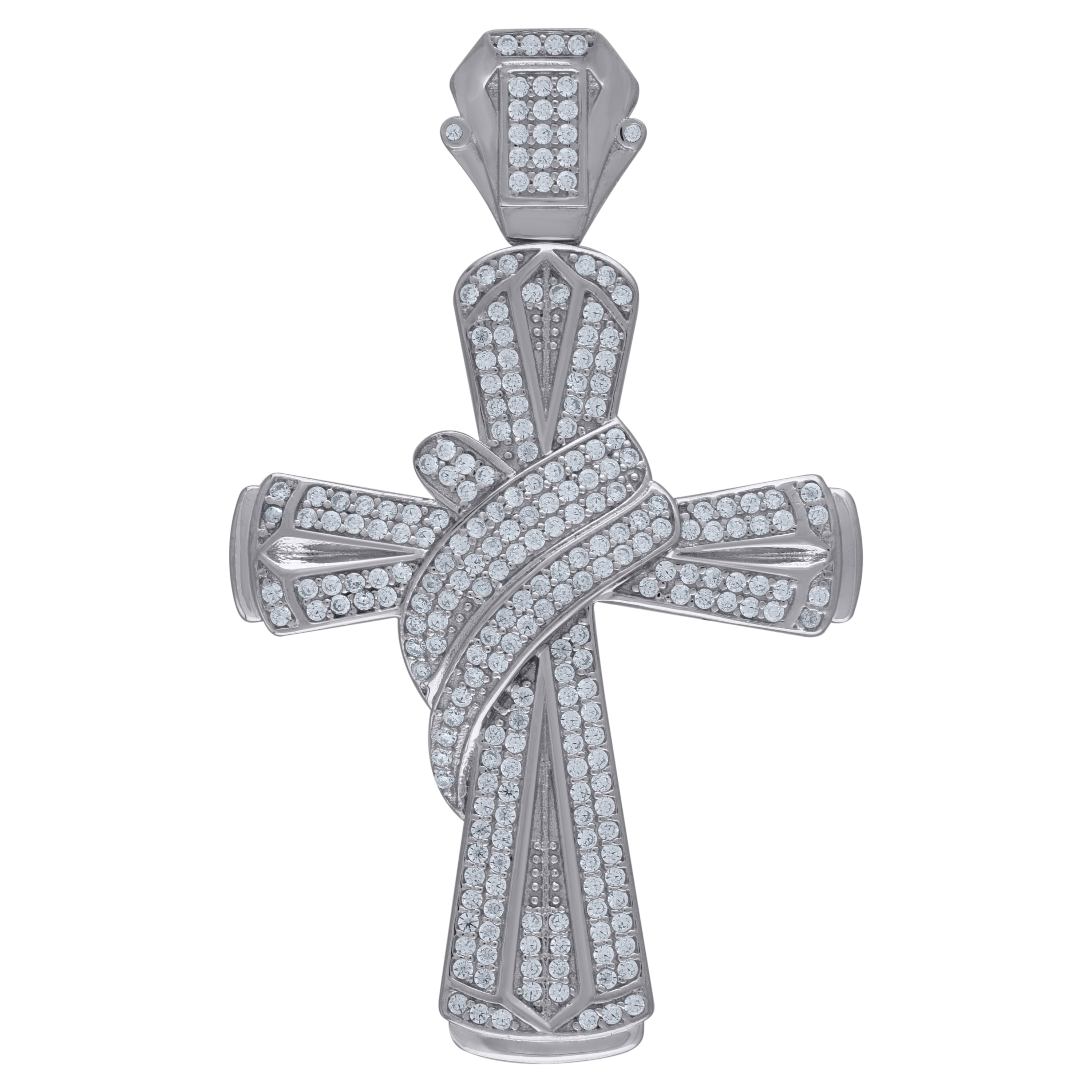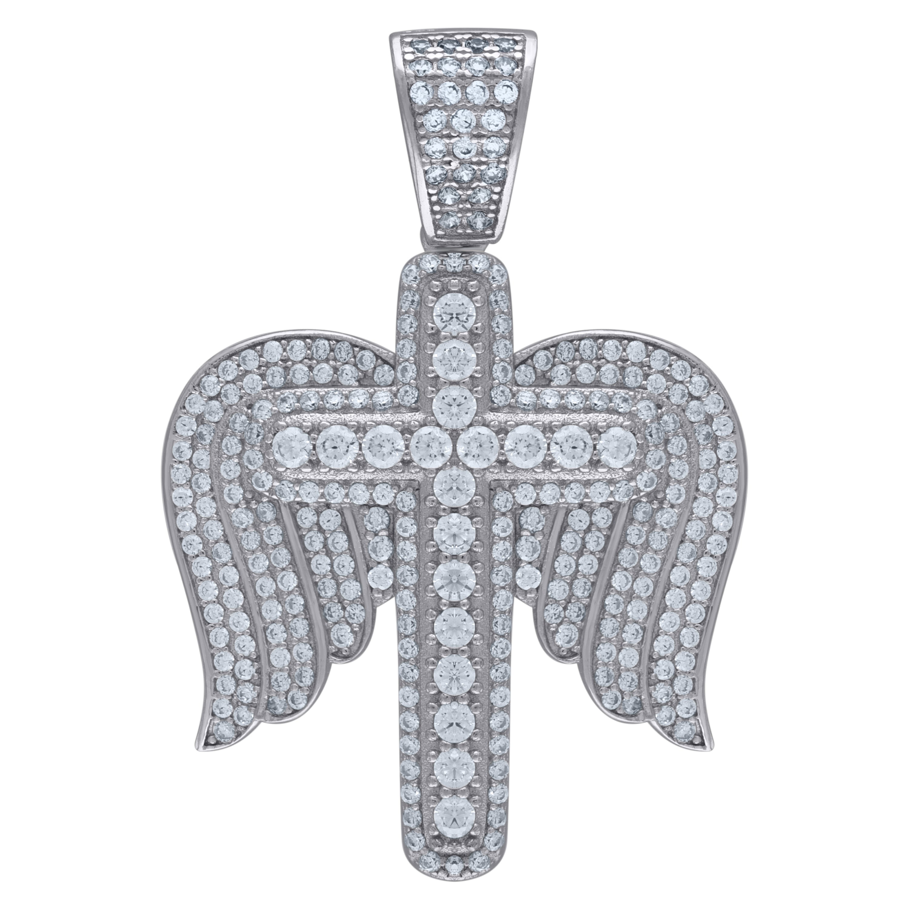925 Sterling Silver Unisex CZ Angel Wings Cross Religious Charm Pendant