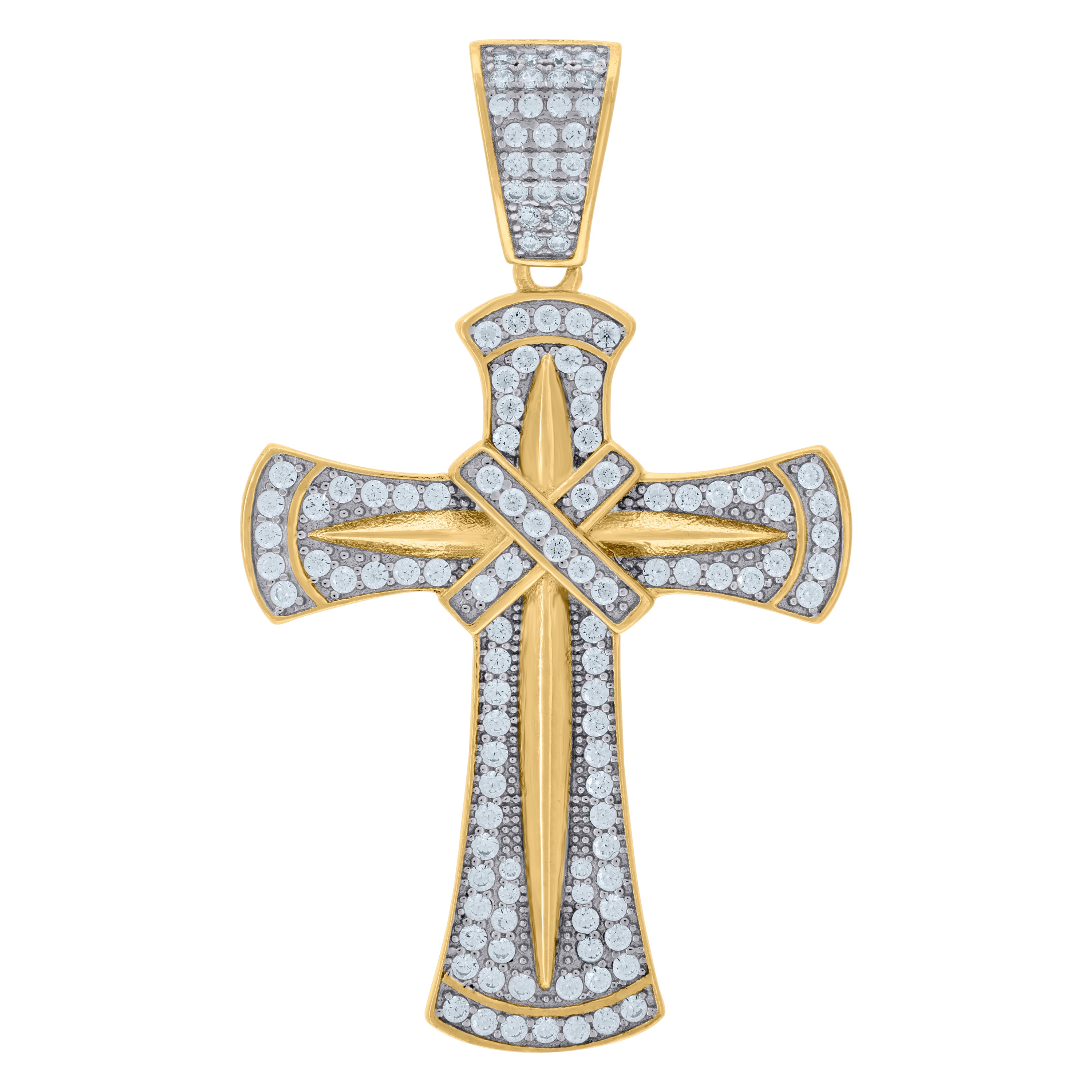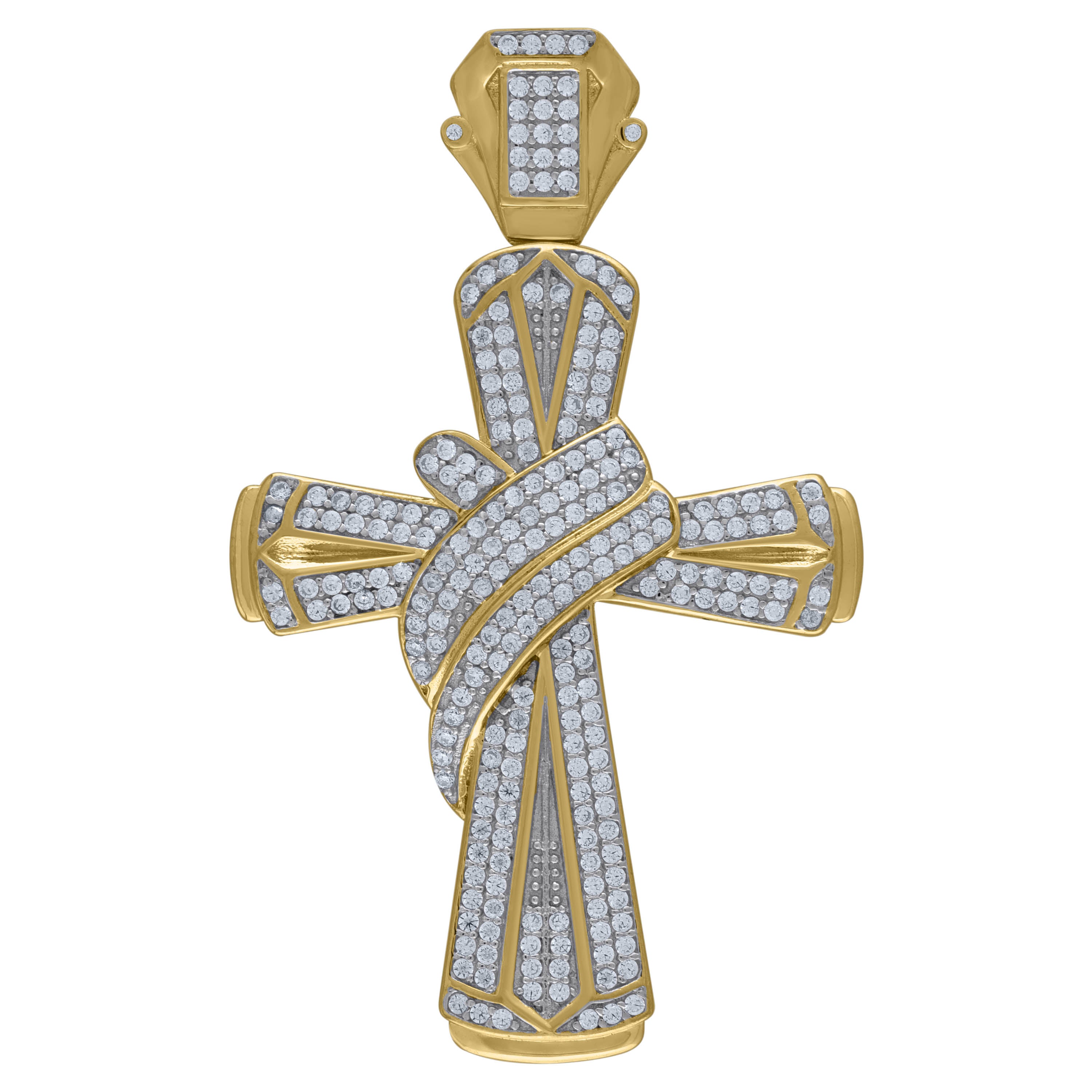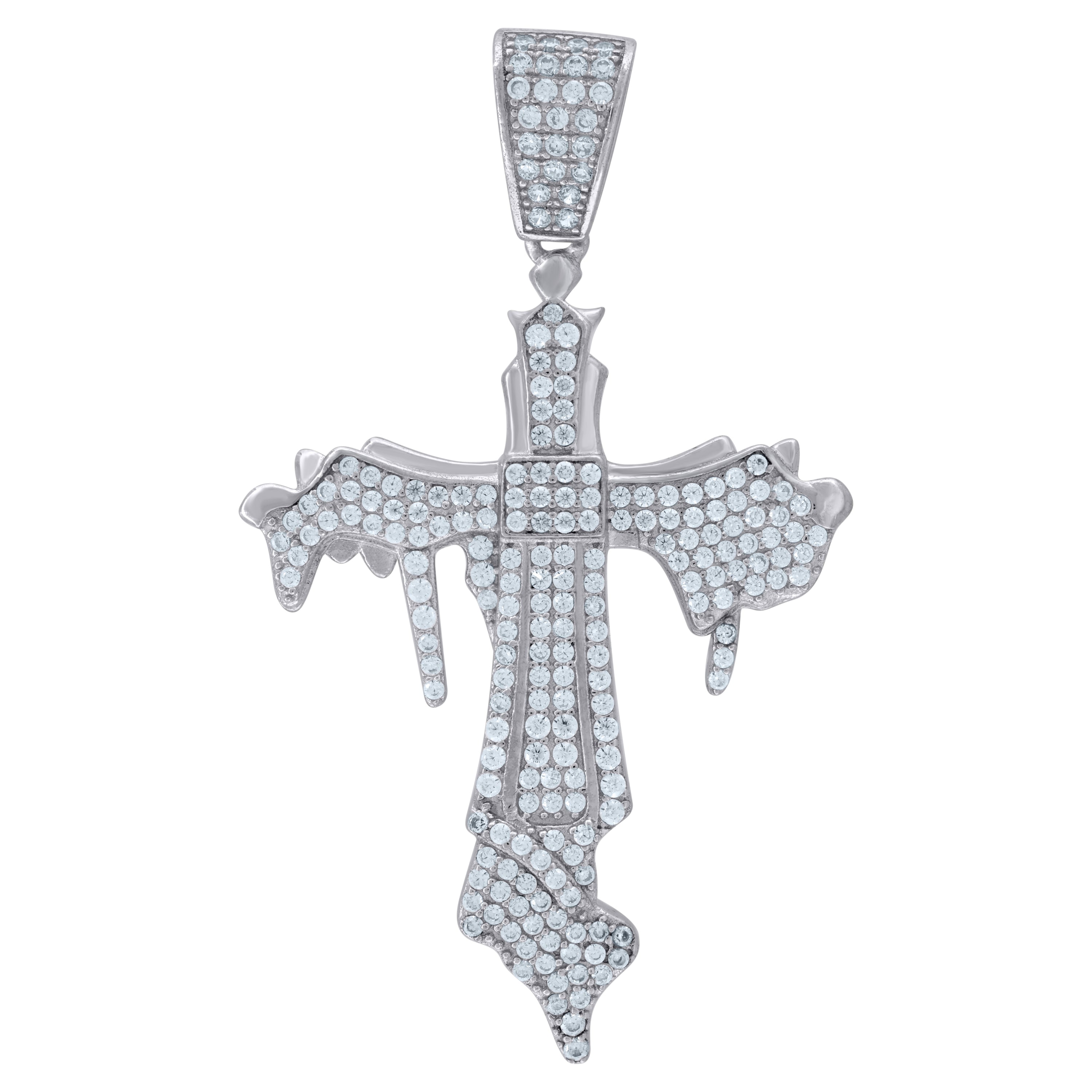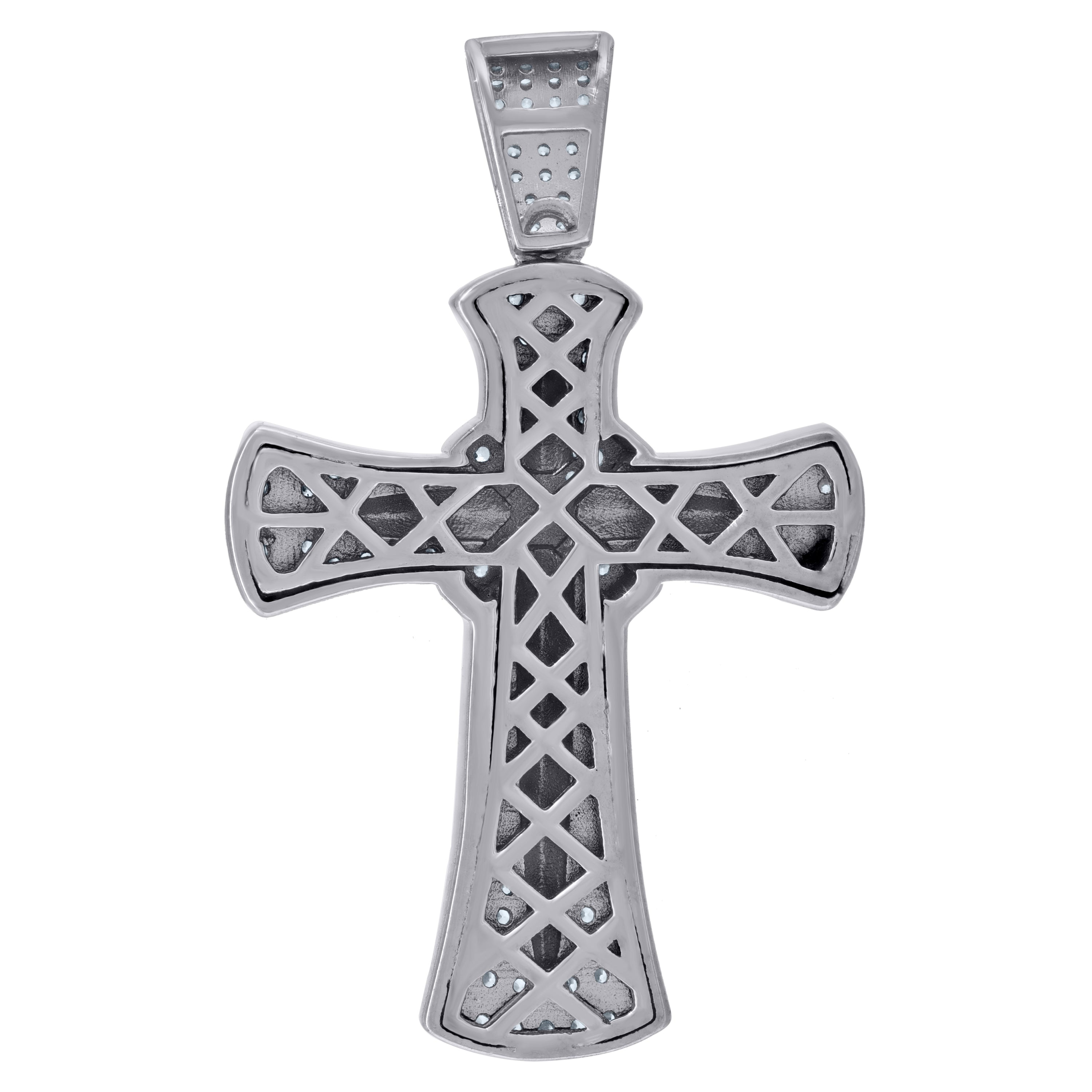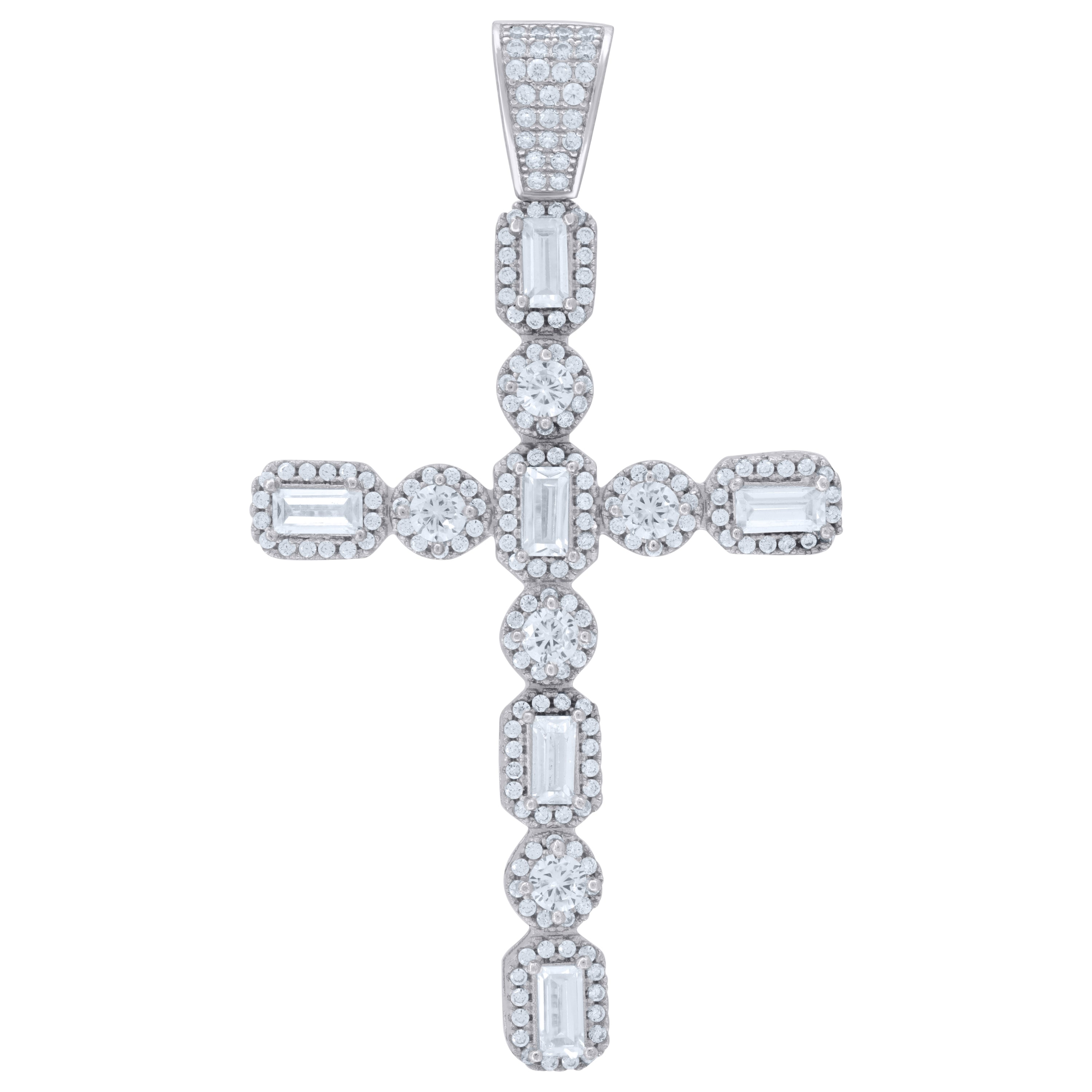 925 Sterling Silver Unisex CZ Angel Wings Cross Religious Charm Pendant