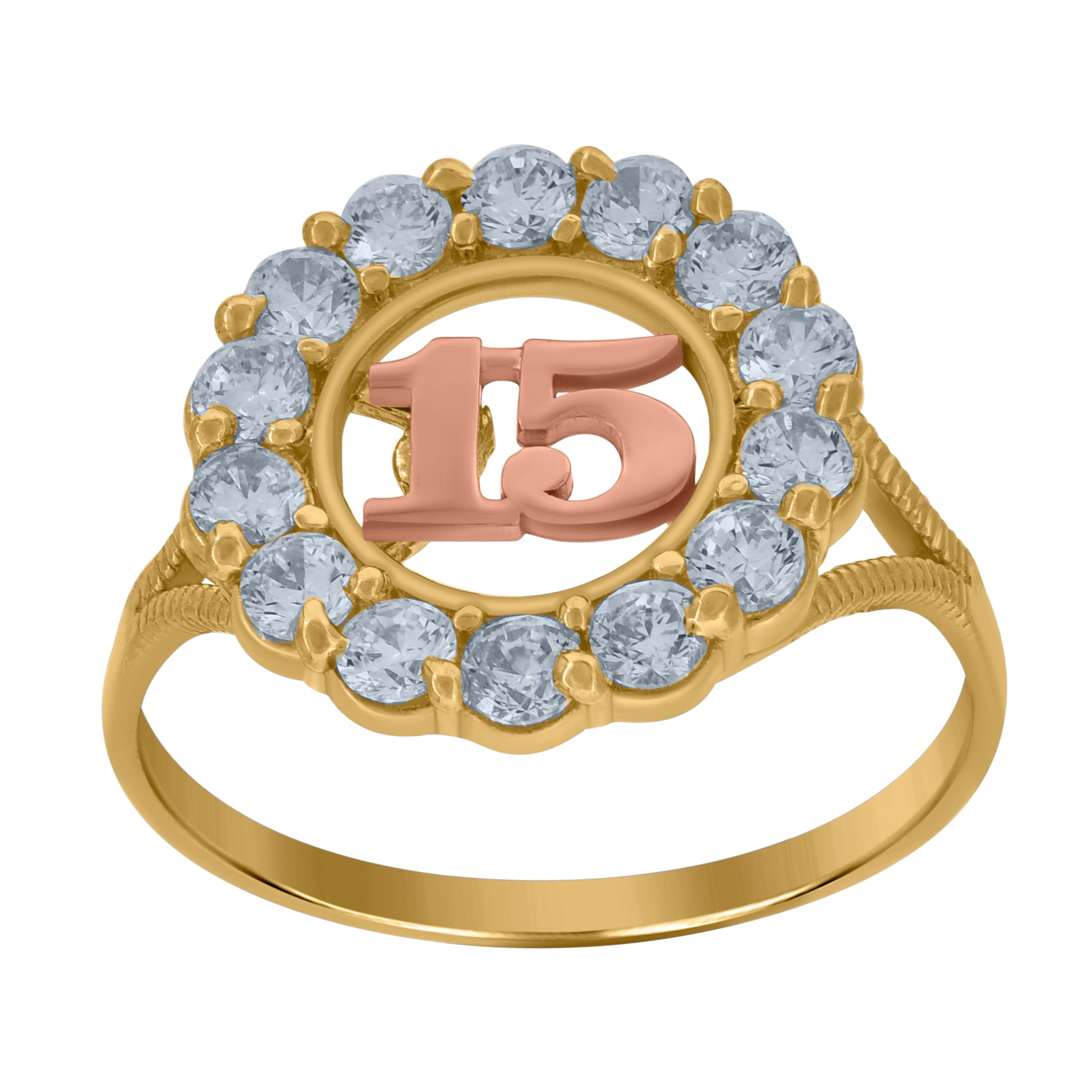 10kt Two-tone Gold Womens Cubic Zirconia 15 Anos Engagement Ring
