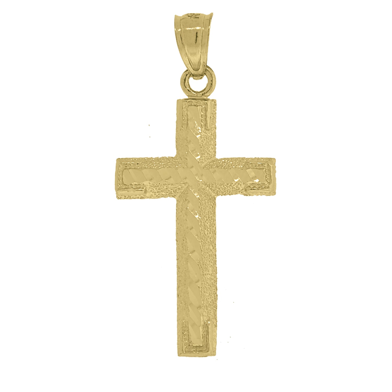 10kt Yellow Gold Mens Women Textured Cross Religious Charm Pendant