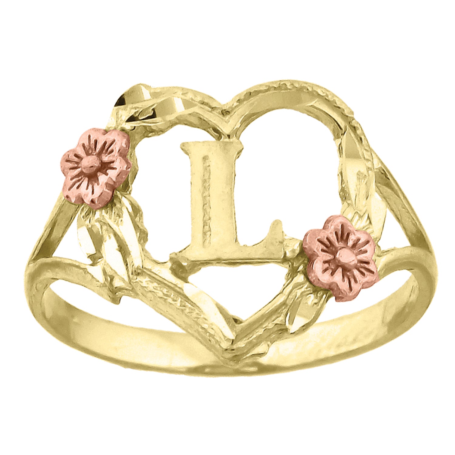 10kt Two-tone Gold Womens DC Textured Initial Letter L Heart Band Ring