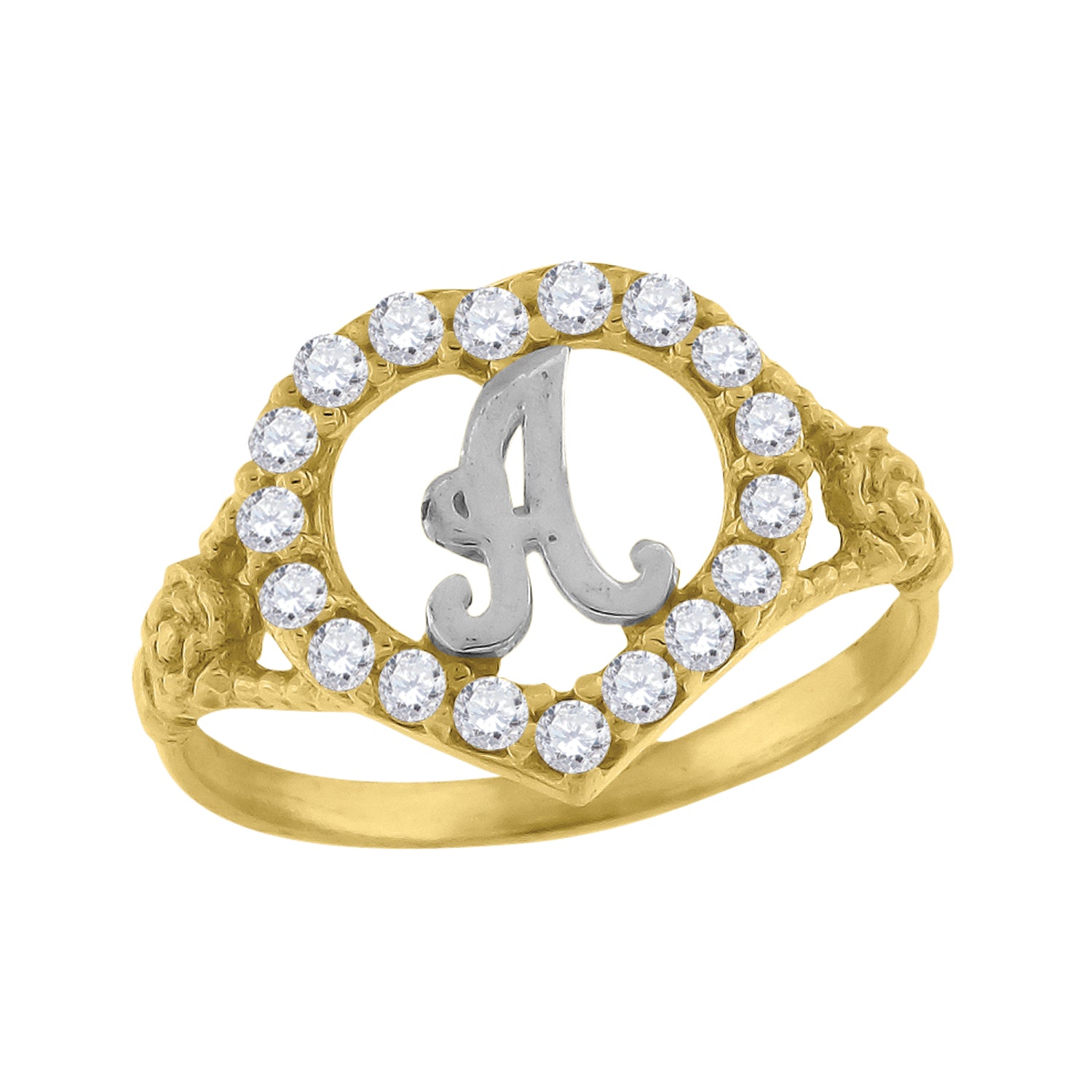 10kt Two-tone Gold Womens Cubic Zirconia Polished Finish Heart Shape Letter A Initial Ring