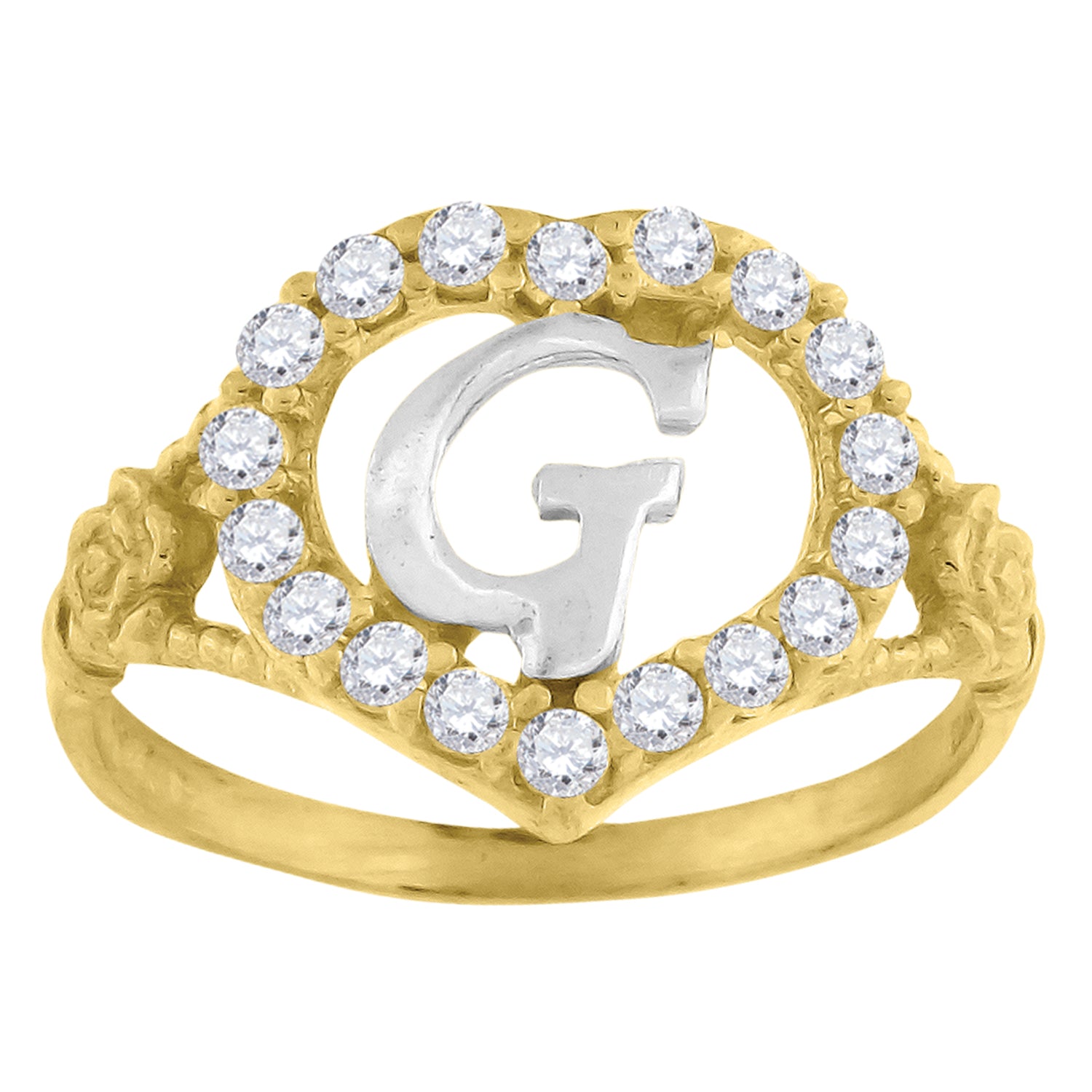 10kt Two-tone Gold Womens Cubic Zirconia Polished Finish Heart Shape Letter G Initial Ring