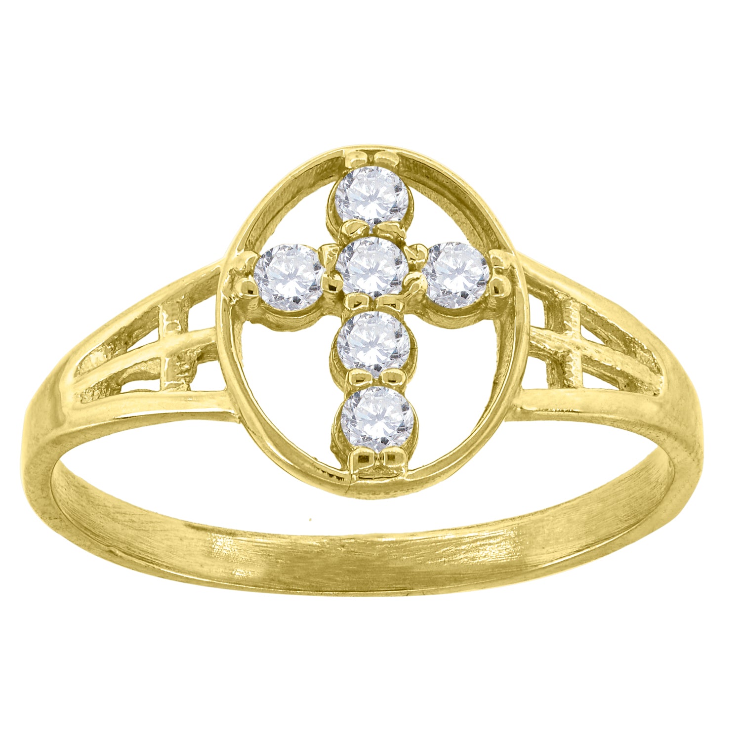 10kt Yellow Gold Womens Cubic Zirconia Oval Cross Religious Ring