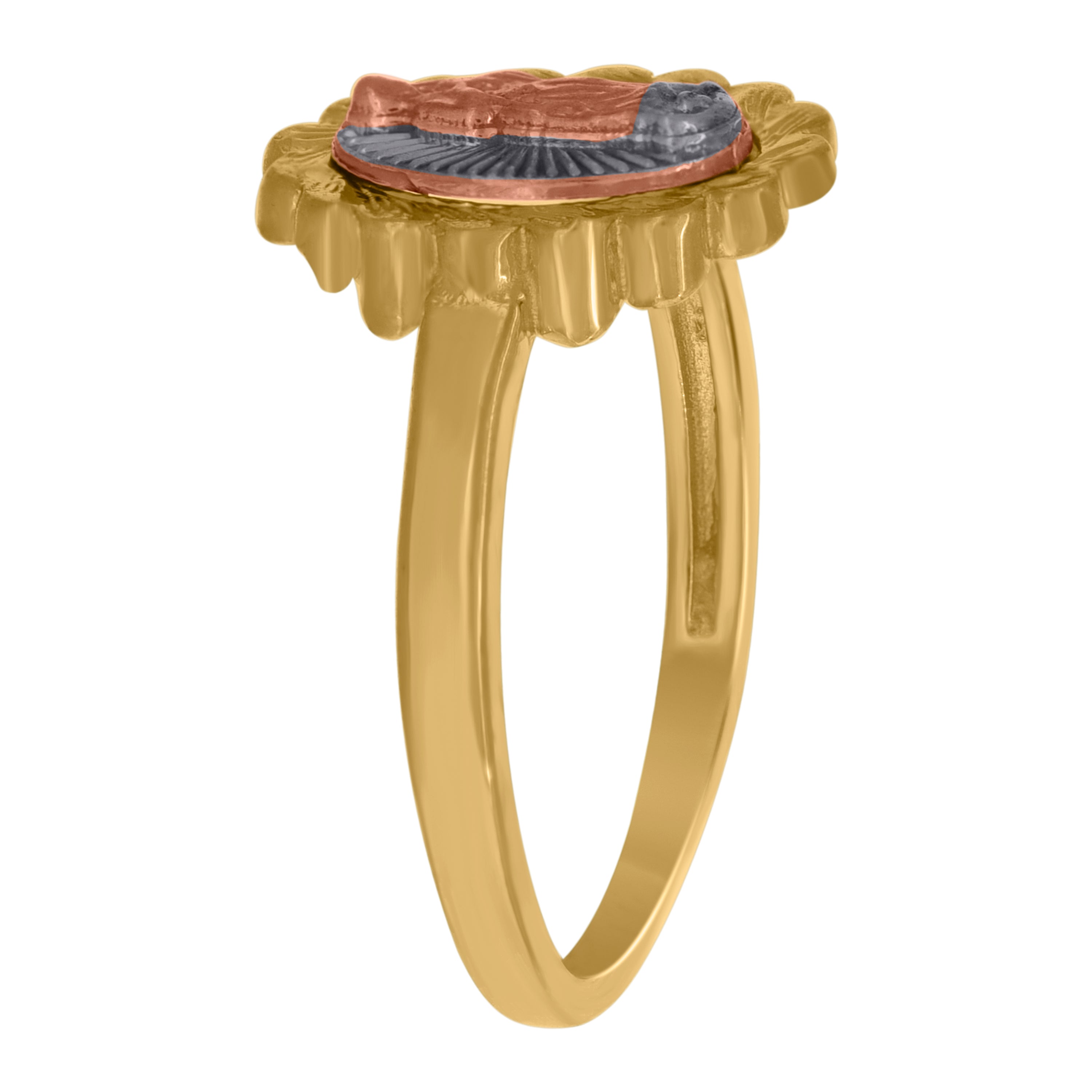 10kt Tri-color Gold Womens DC Textured Lady Of Guadalupe Religious Ring