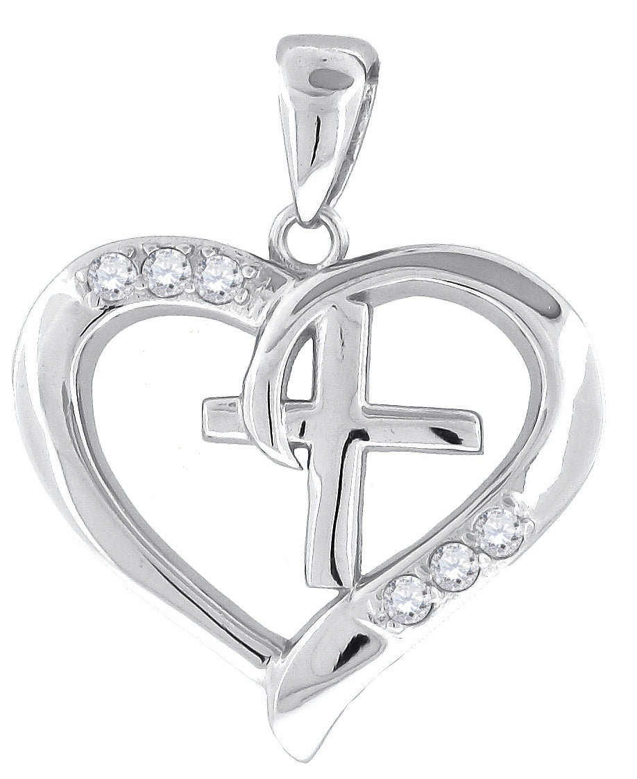 925 Sterling Silver Womens Cubic-Zirconia Cross Heart Charm Pendant