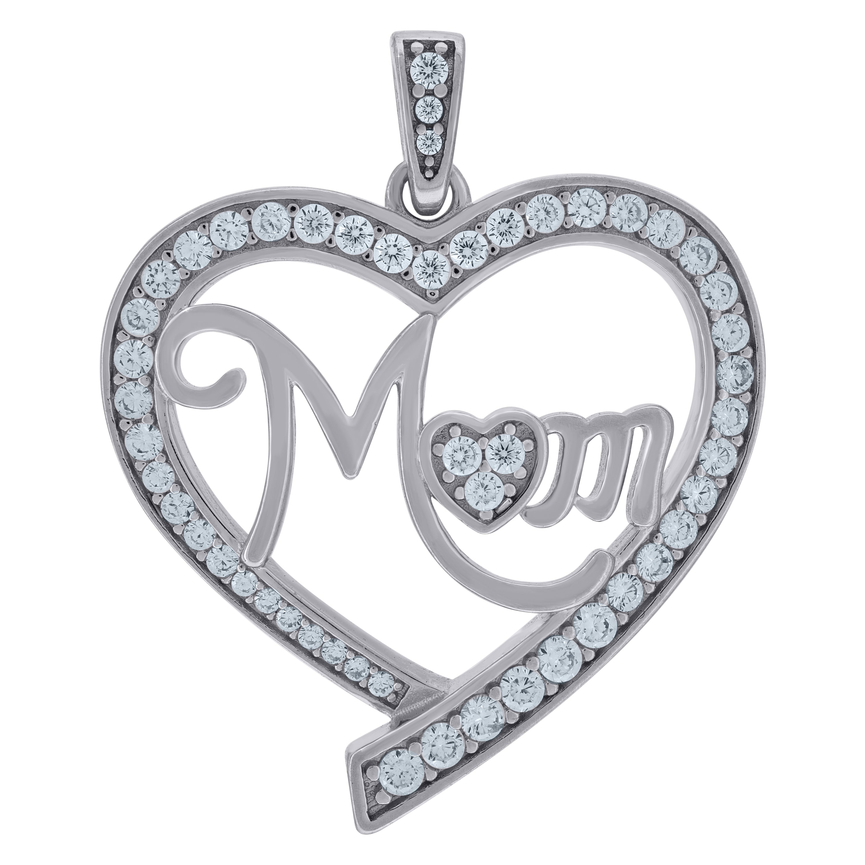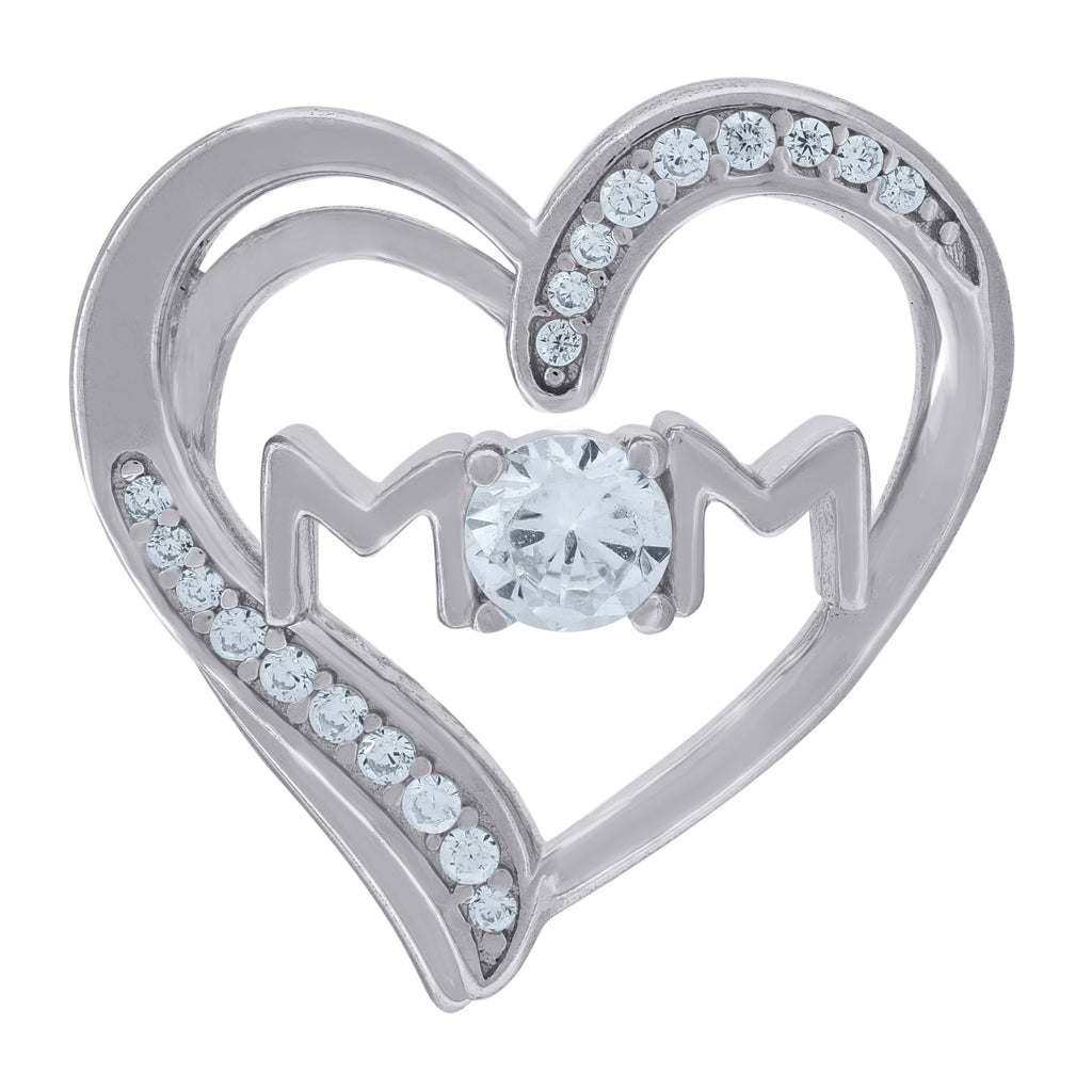 925 Sterling Silver Womens Cubic-Zirconia Heart Mom Talking Charm Pendant