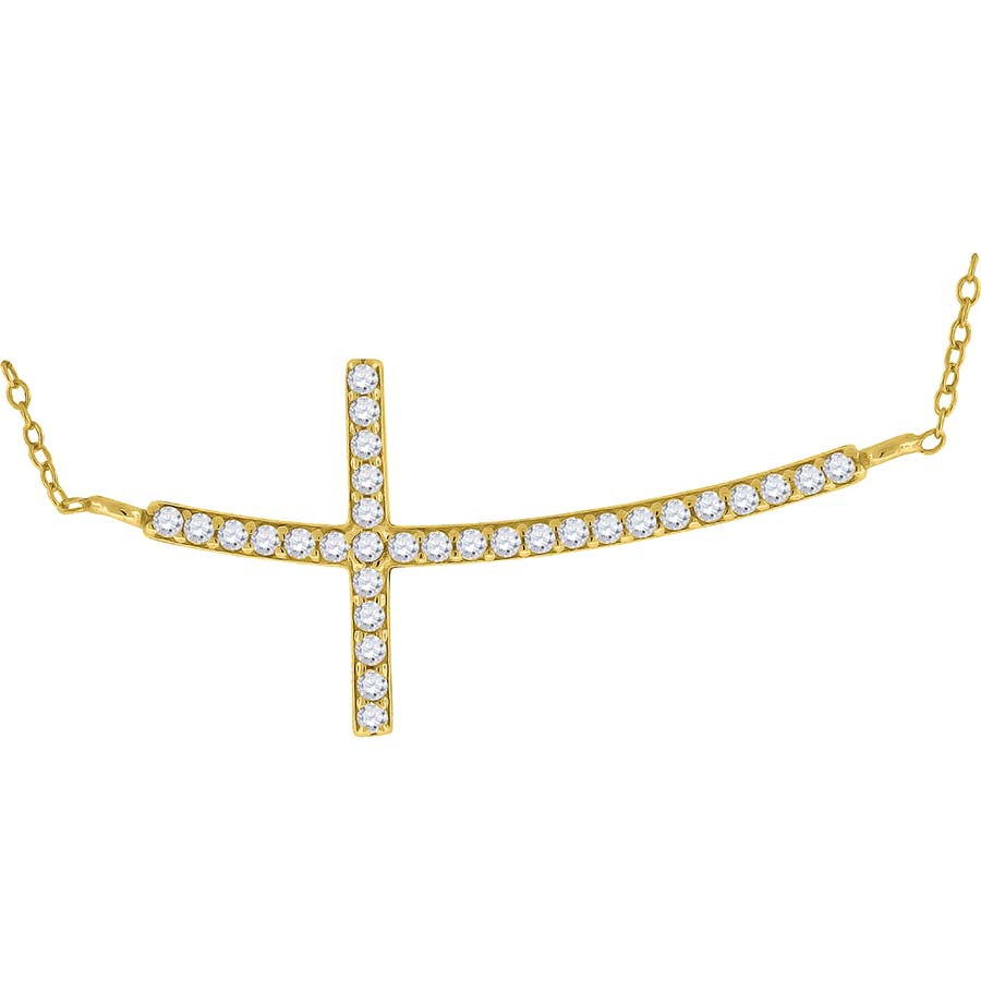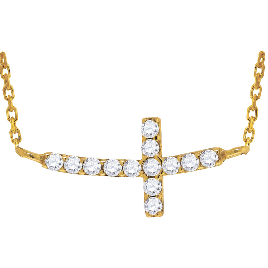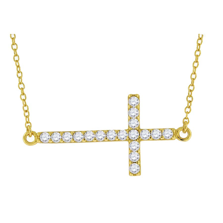 925 Sterling Silver Yellow-Tone Women Cubic Zirconia Rolo Link Cross Sideway Chain Necklace