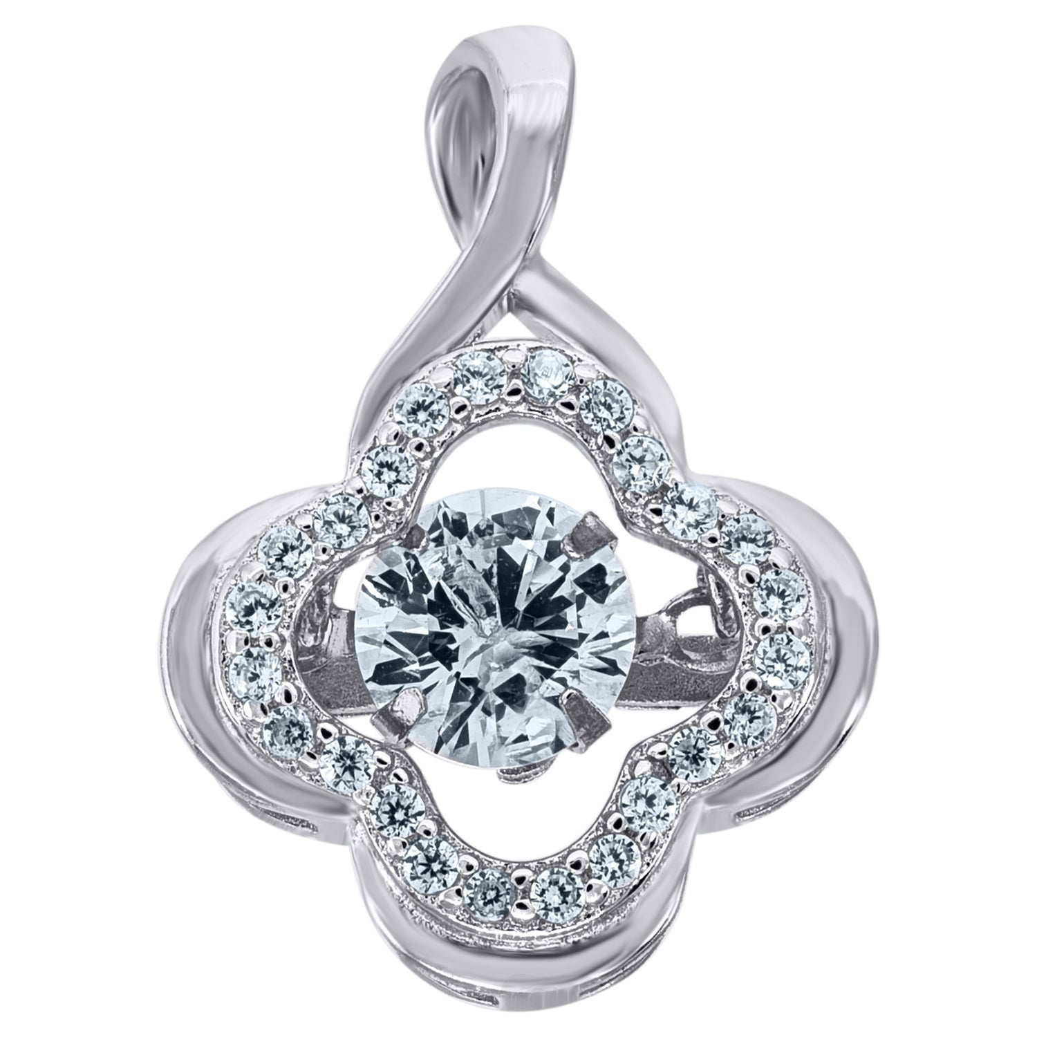 925 Sterling Silver Womens Aqua Cubic Zirconia Fashion Flower Charm Pendant