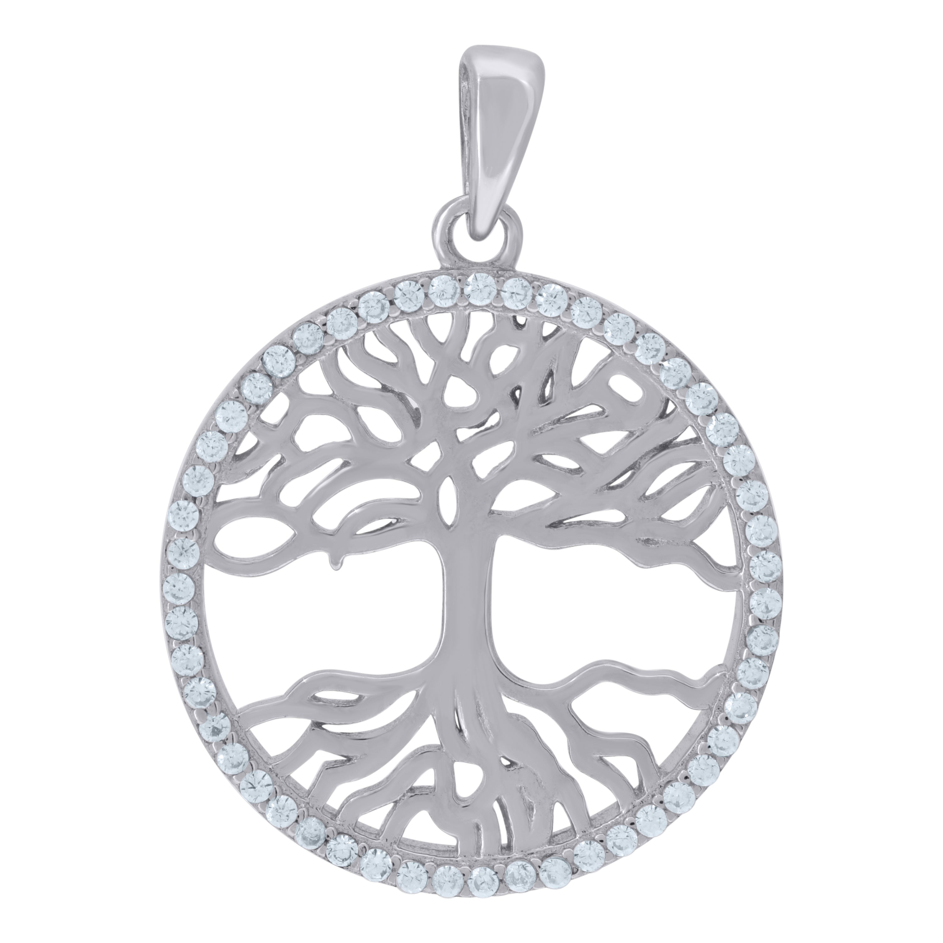 925 Sterling Silver Womens Cubic-Zirconia Tree Of Life Goodluck Charm Pendant