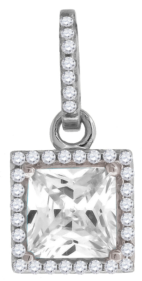925 Sterling Silver Womens Cubic Zirconia Fashion Square Charm Pendant