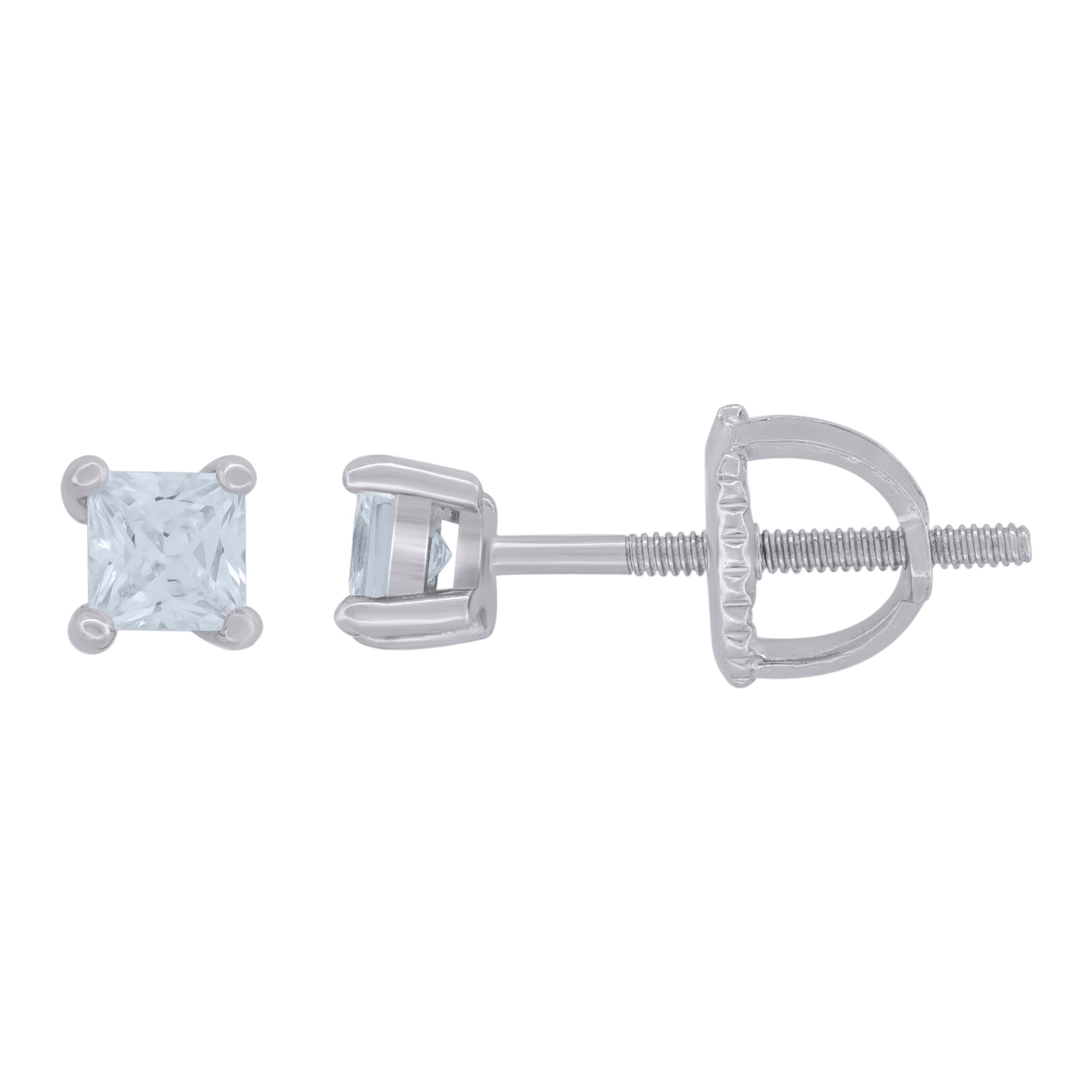 925 Sterling Silver Womens Cubic Zirconia Square Classic Studs Earrings