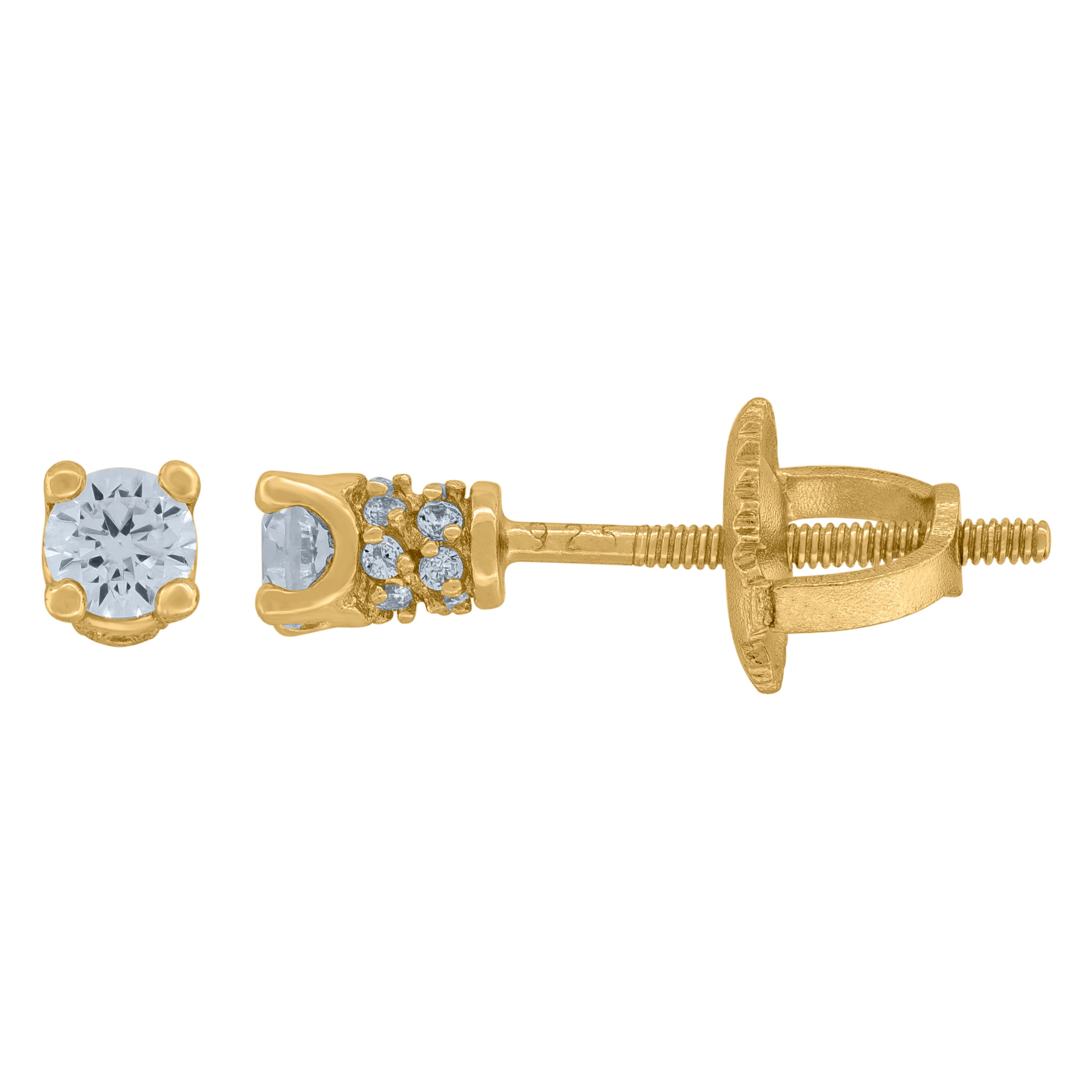 925 Sterling Silver Yellow-Tone Womens Cubic Zirconia Round Stud Earrings