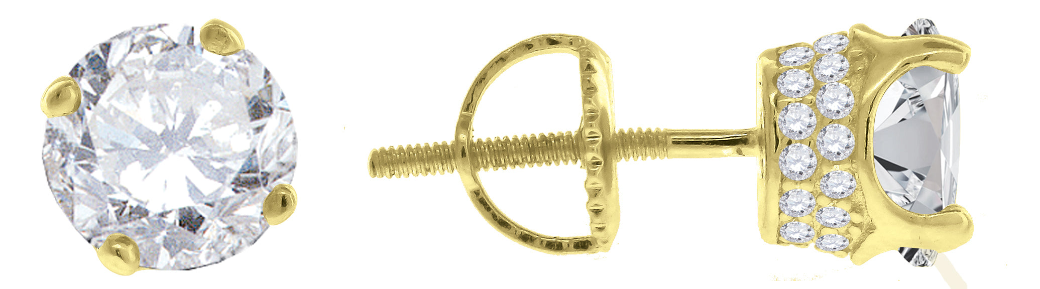 925 Sterling Silver Yellow-Tone Womens Cubic Zirconia Round Stud Earrings