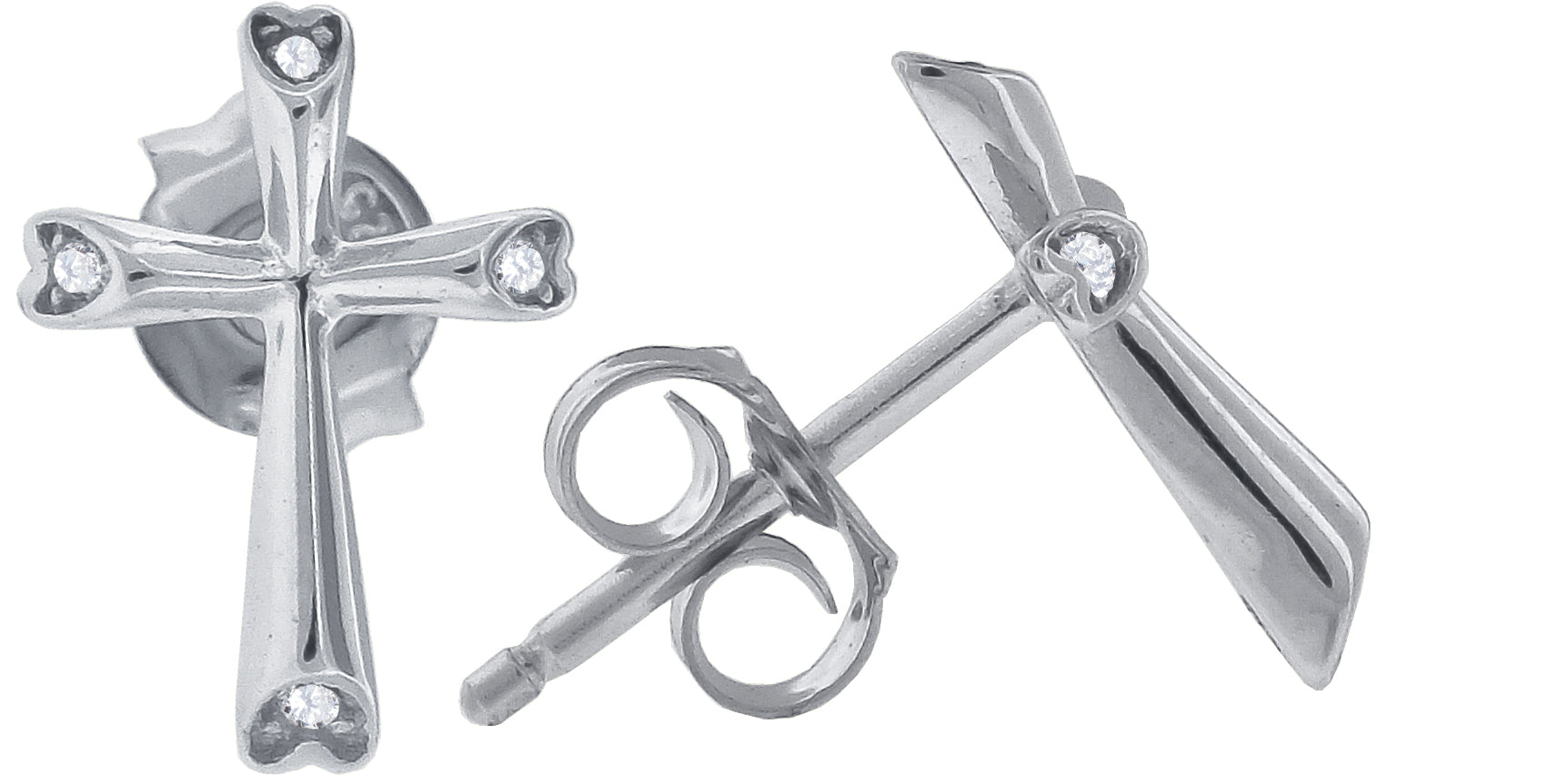 925 Sterling Silver Womens Cubic Zirconia Cross Religious Stud Earrings