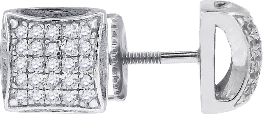 925 Sterling Silver Womens Cubic Zirconia Square Stud Earrings