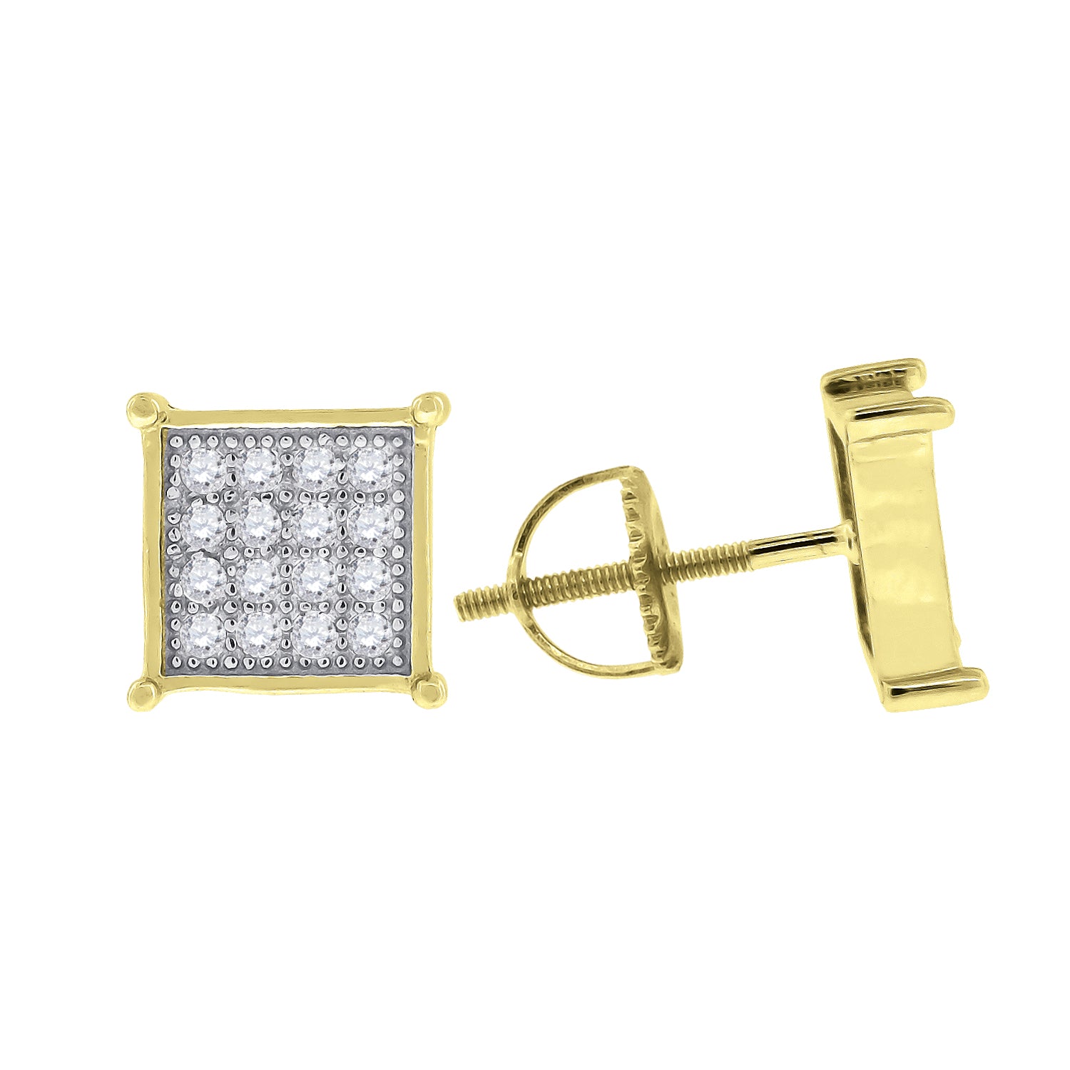 925 Sterling Silver Yellow-tone Womens Cubic Zirconia Square Stud Earrings