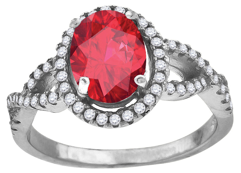 925 Sterling Silver Womens Red Oval Cubic Zirconia Fancy Ring