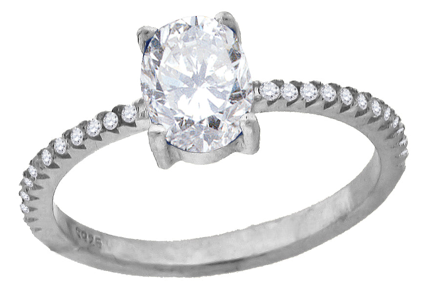 925 Sterling Silver Womens Oval Cubic Zirconia Fashion Ring