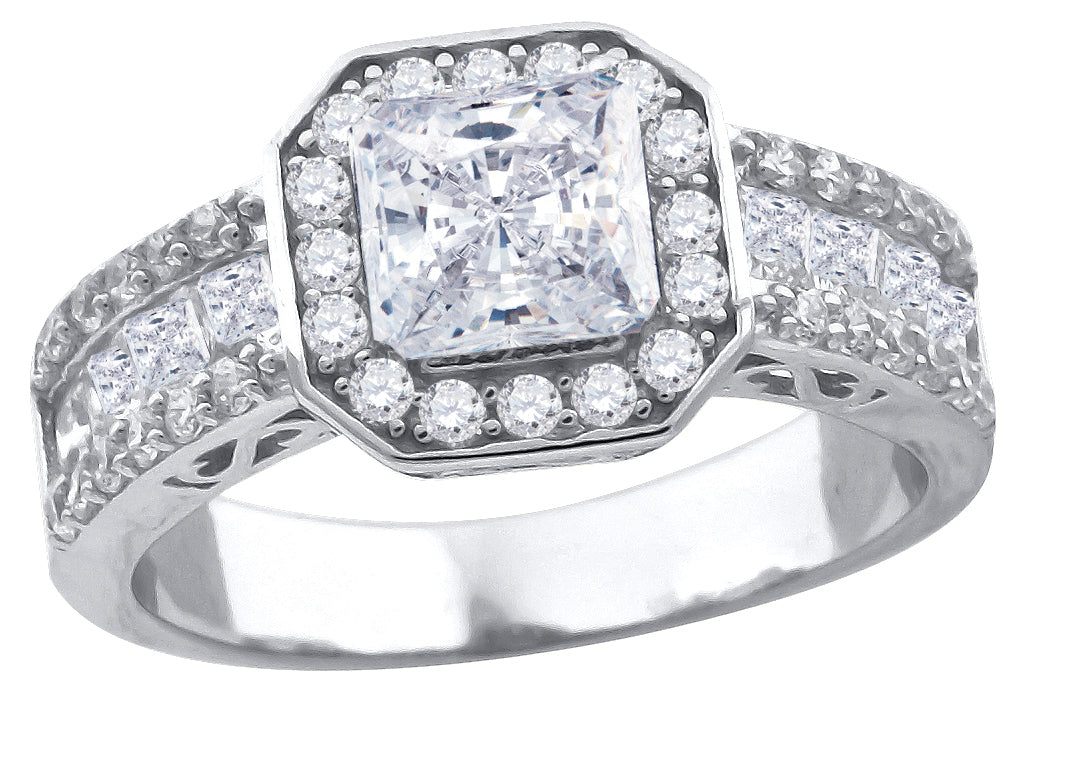 925 Sterling Silver Womens Cubic Zirconia Octagon Head Engagement Ring