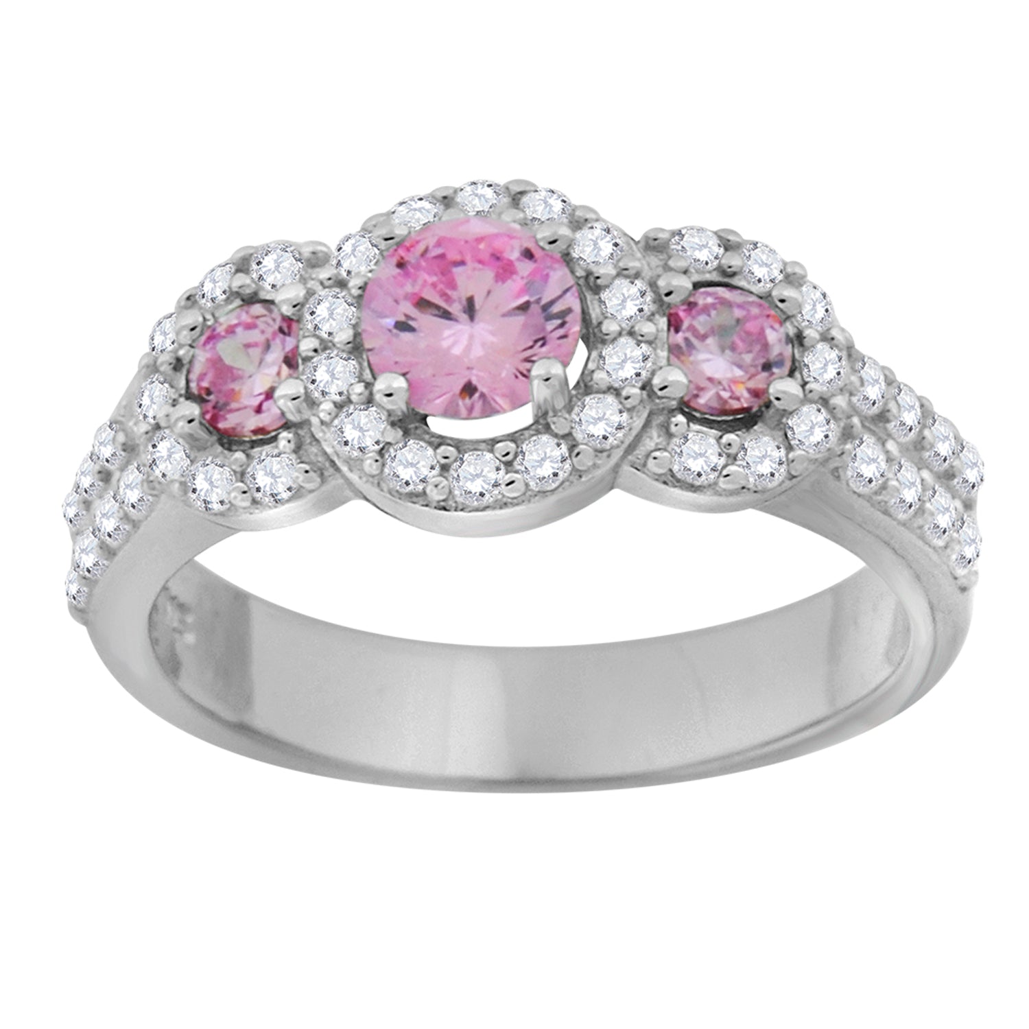 925 Sterling Silver Womens Pink Cubic Zirconia 3 Stone Ring Size 8