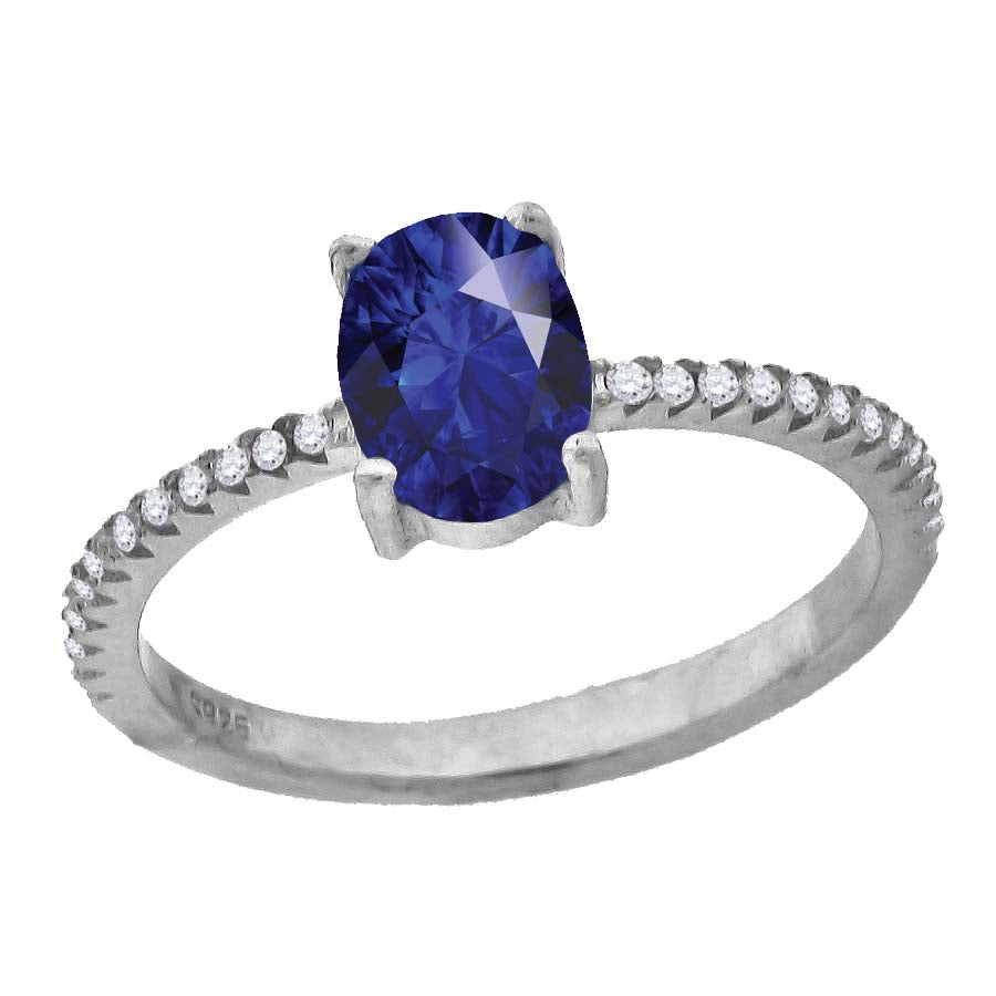 925 Sterling Silver Womens White Royal Blue Oval Cubic Zirconia Ring Size 6