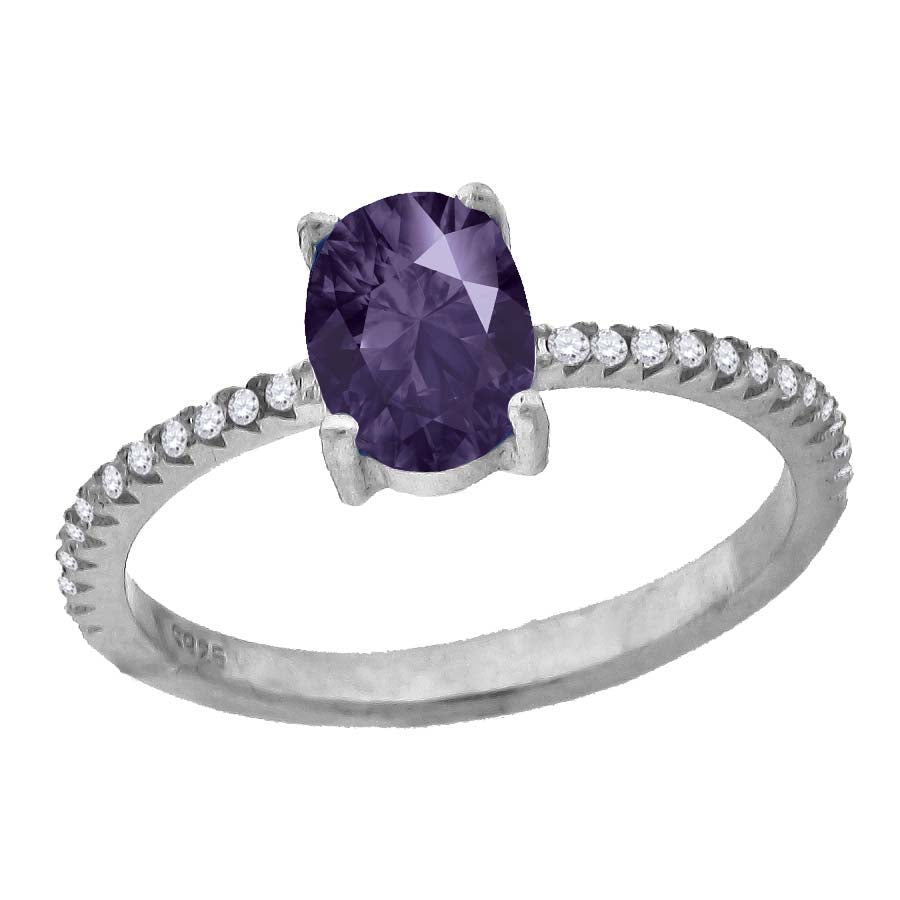 925 Sterling Silver Womens White Purple Oval Cubic Zirconia Ring Size 7