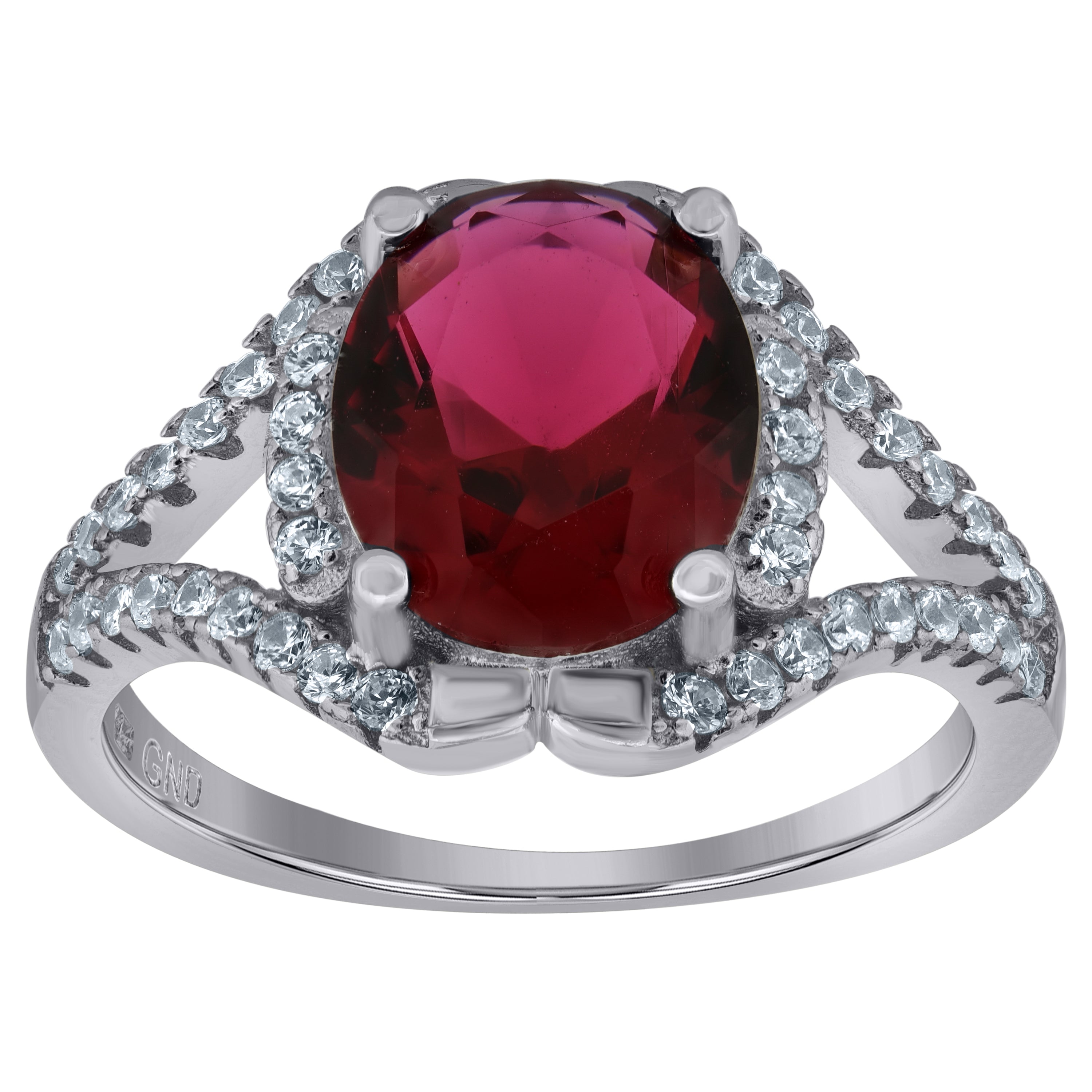 925 Sterling Silver Womens Red Oval Cubic Zirconia Fancy Ring Size 8