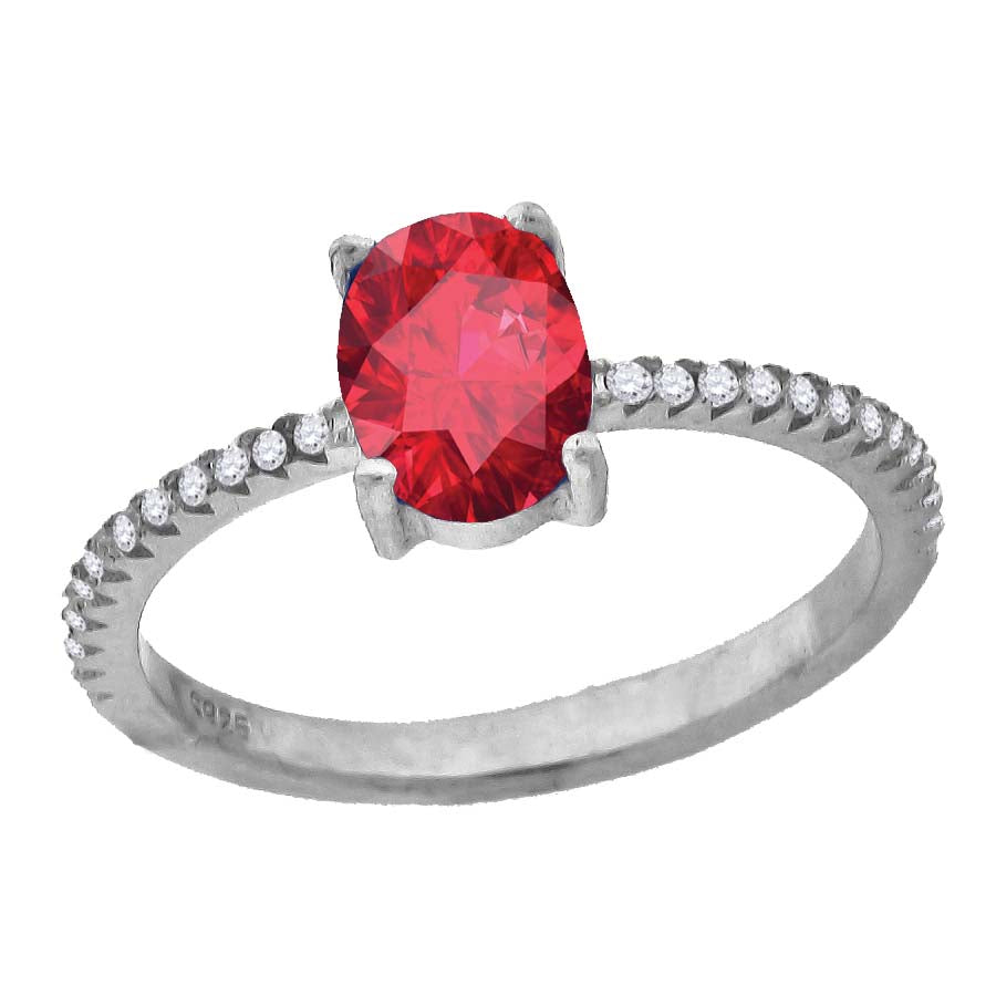 925 Sterling Silver Womens White Red Oval Cubic Zirconia Ring Size 8