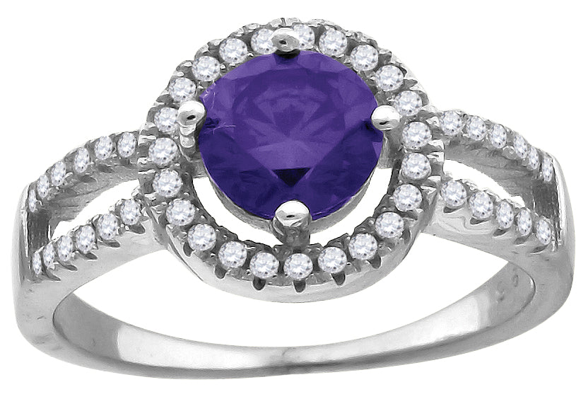 925 Sterling Silver Womens Purple Cubic Zirconia Fancy Ring Size 9