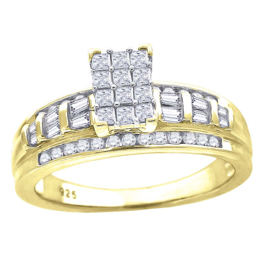 925 Sterling Silver Yellow-Tone Womens Cubic Zirconia Cinderella Ring Size 6