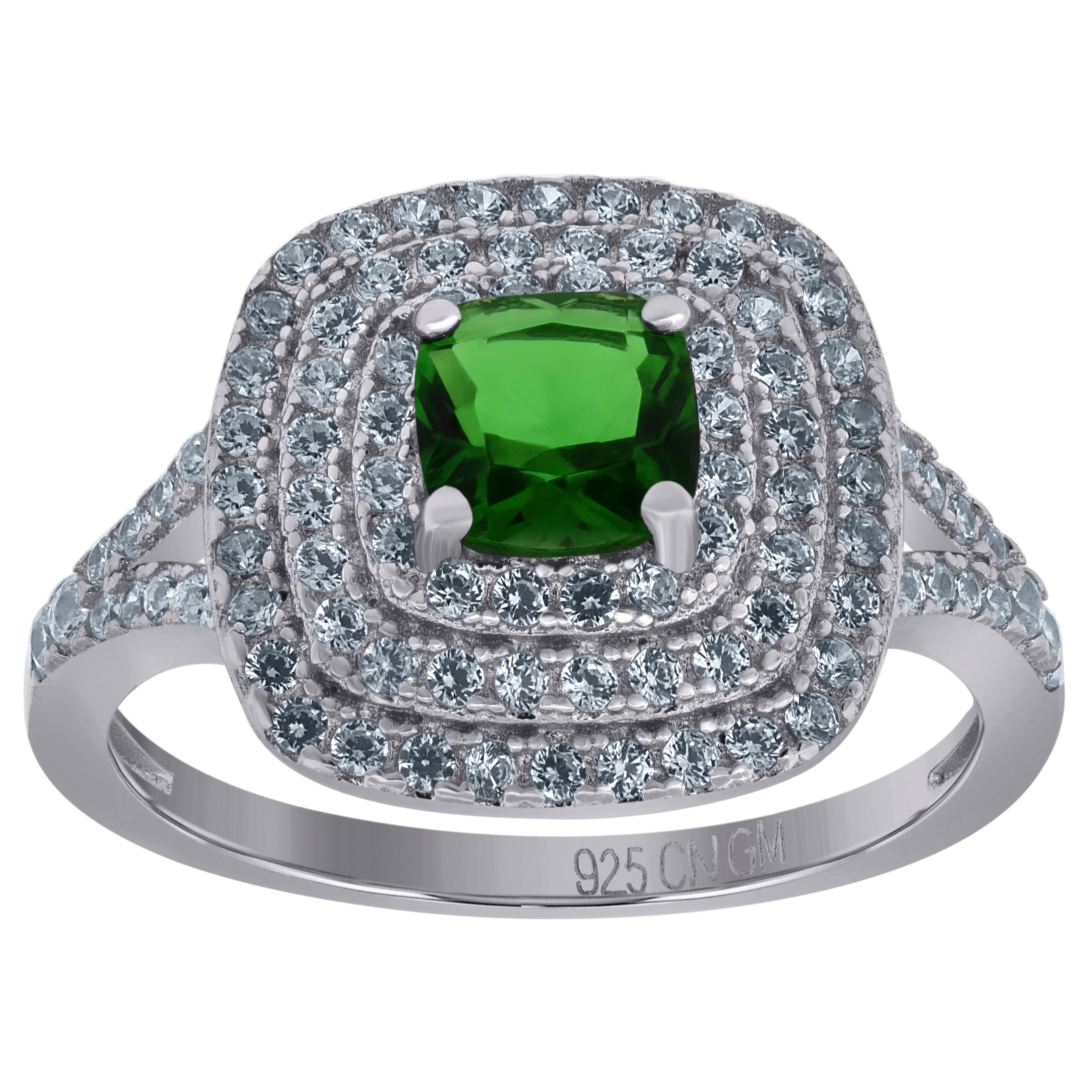925 Sterling Silver Womens Green Princess Cut Cubic Zirconia Fashion Ring