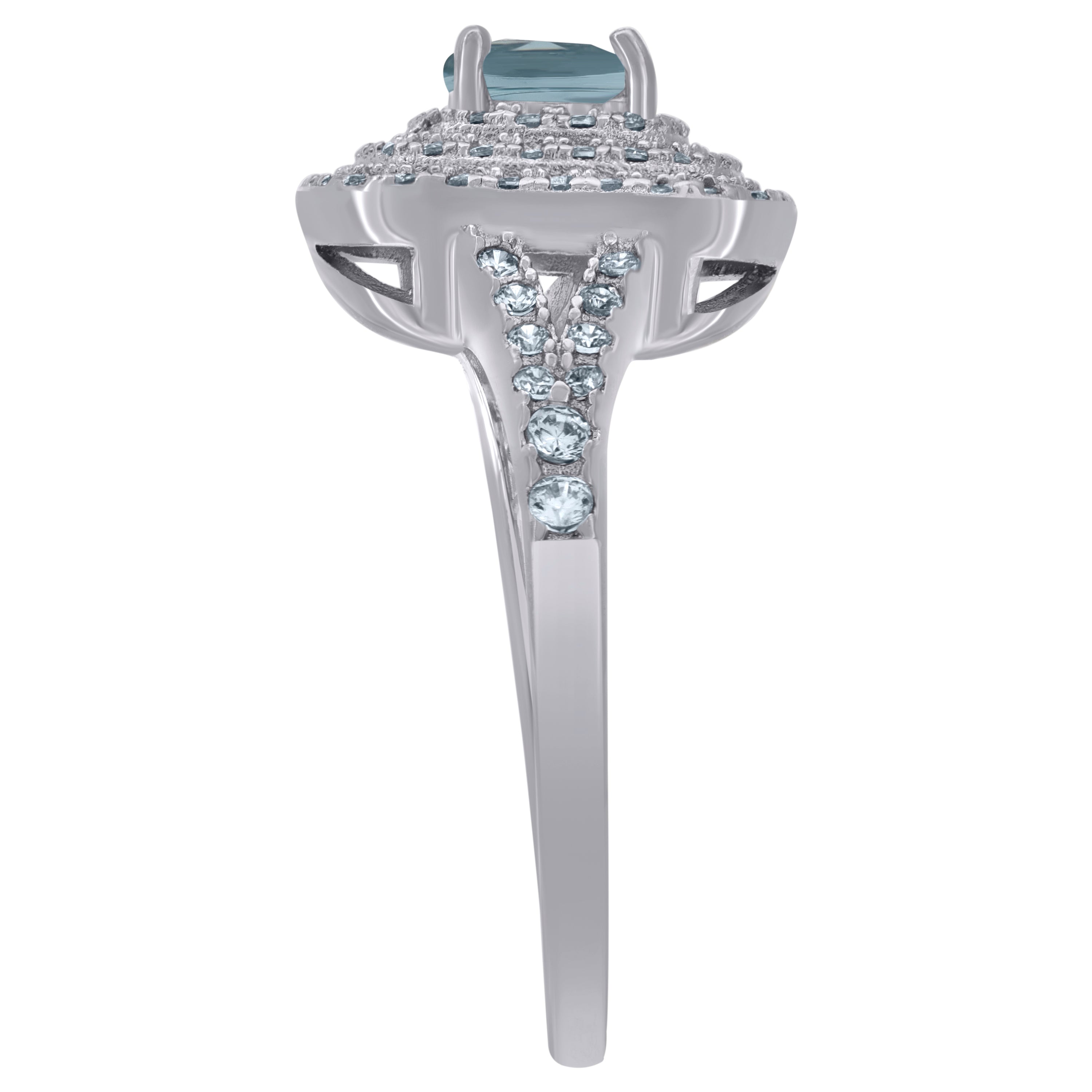 925 Sterling Silver Womens Aqua Princess Cut Cubic Zirconia Fashion Ring Size 6