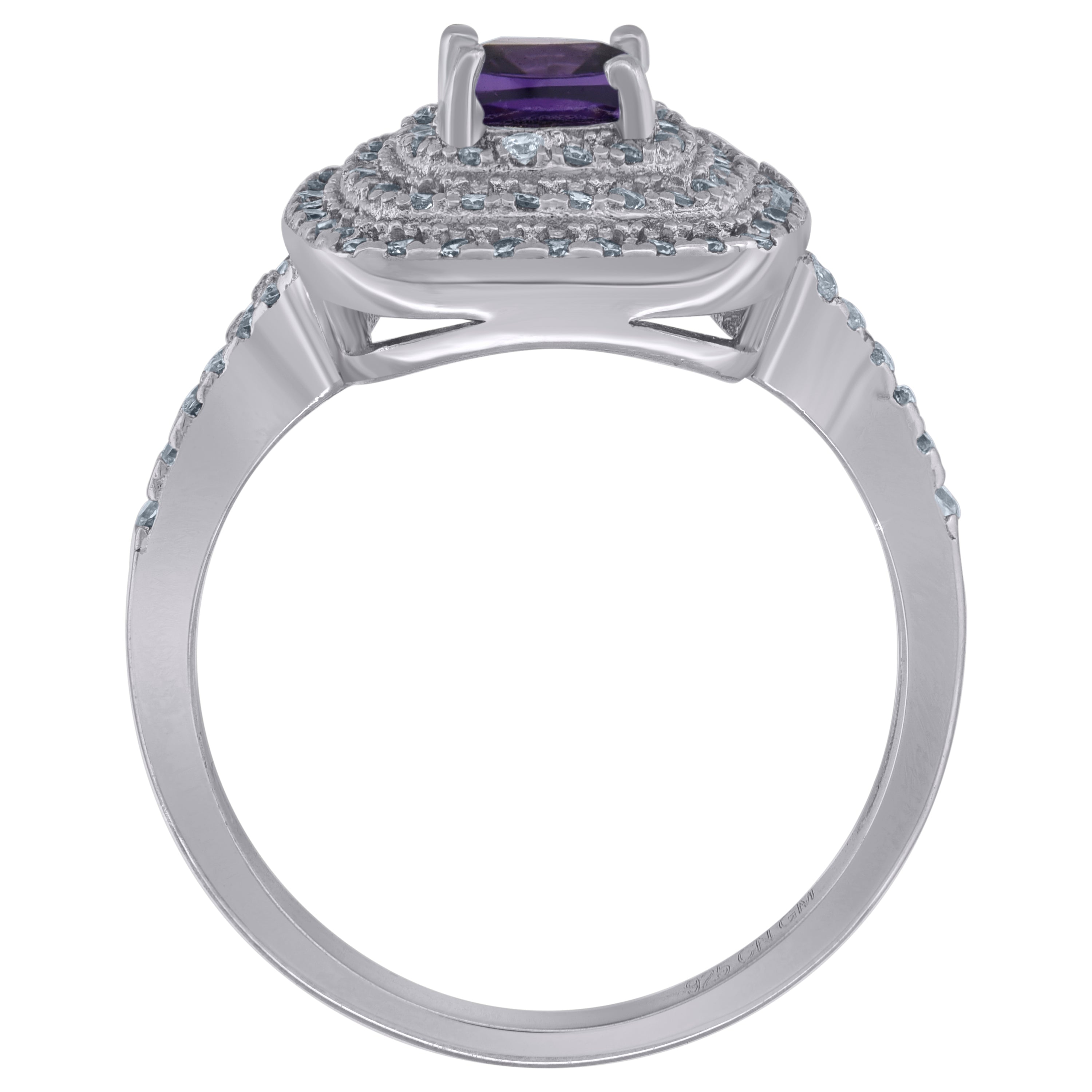 925 Sterling Silver Womens Purple Princess Cut Cubic Zirconia Fashion Ring Size 6