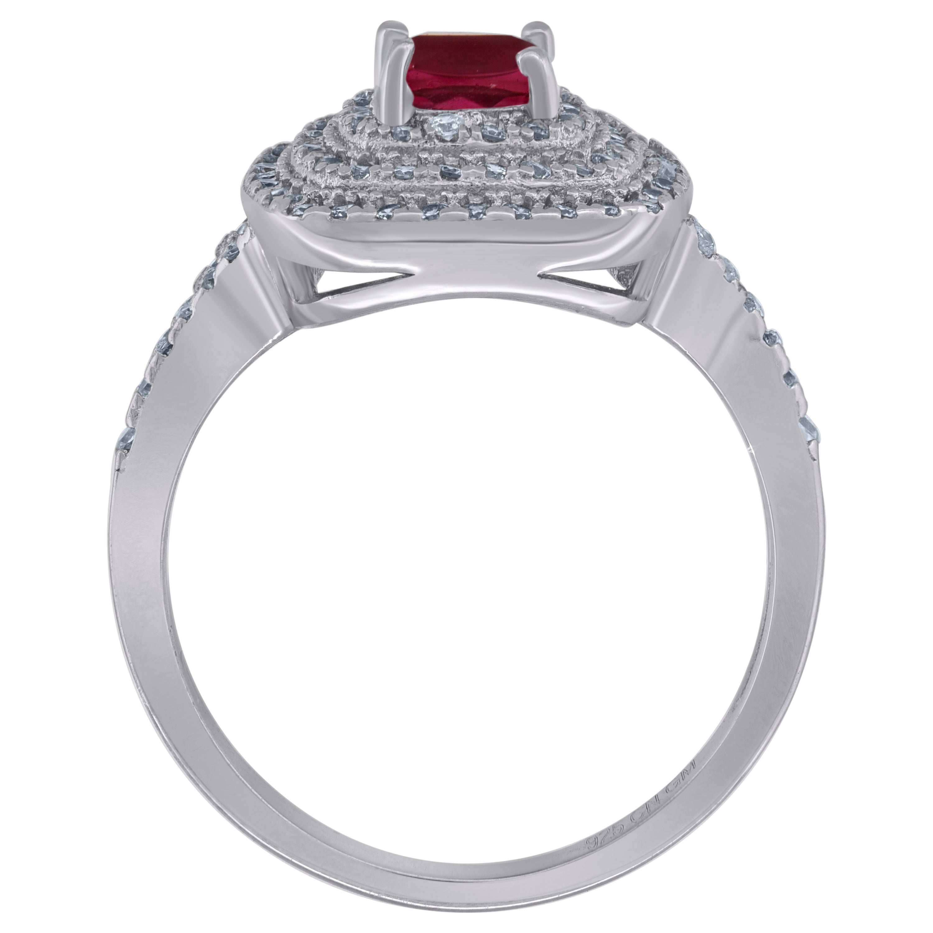 925 Sterling Silver Womens Red Princess Cut Cubic Zirconia Fashion Ring Size 6