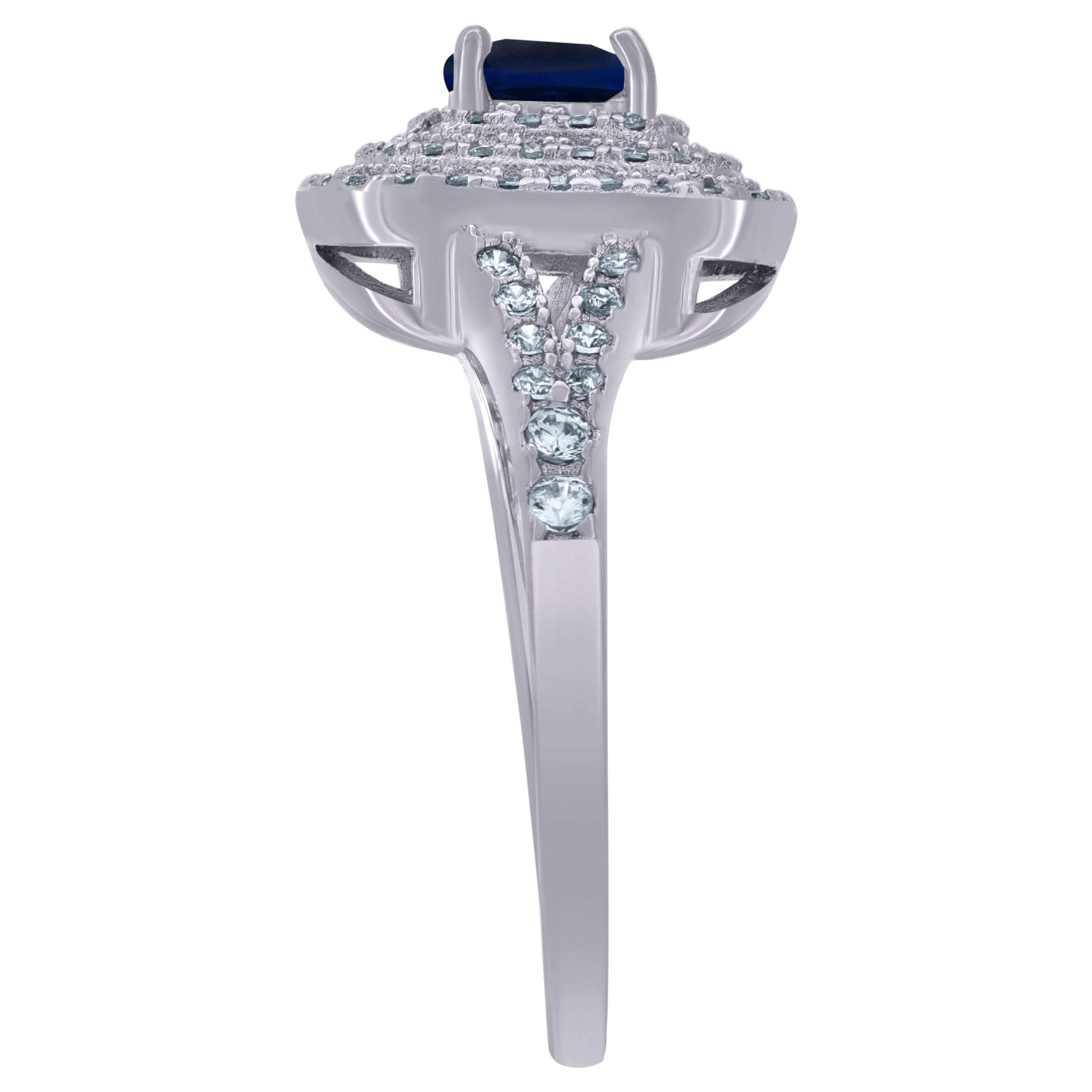 925 Sterling Silver Womens Royal Blue Princess Cut Cubic Zirconia Fashion Ring Size 7