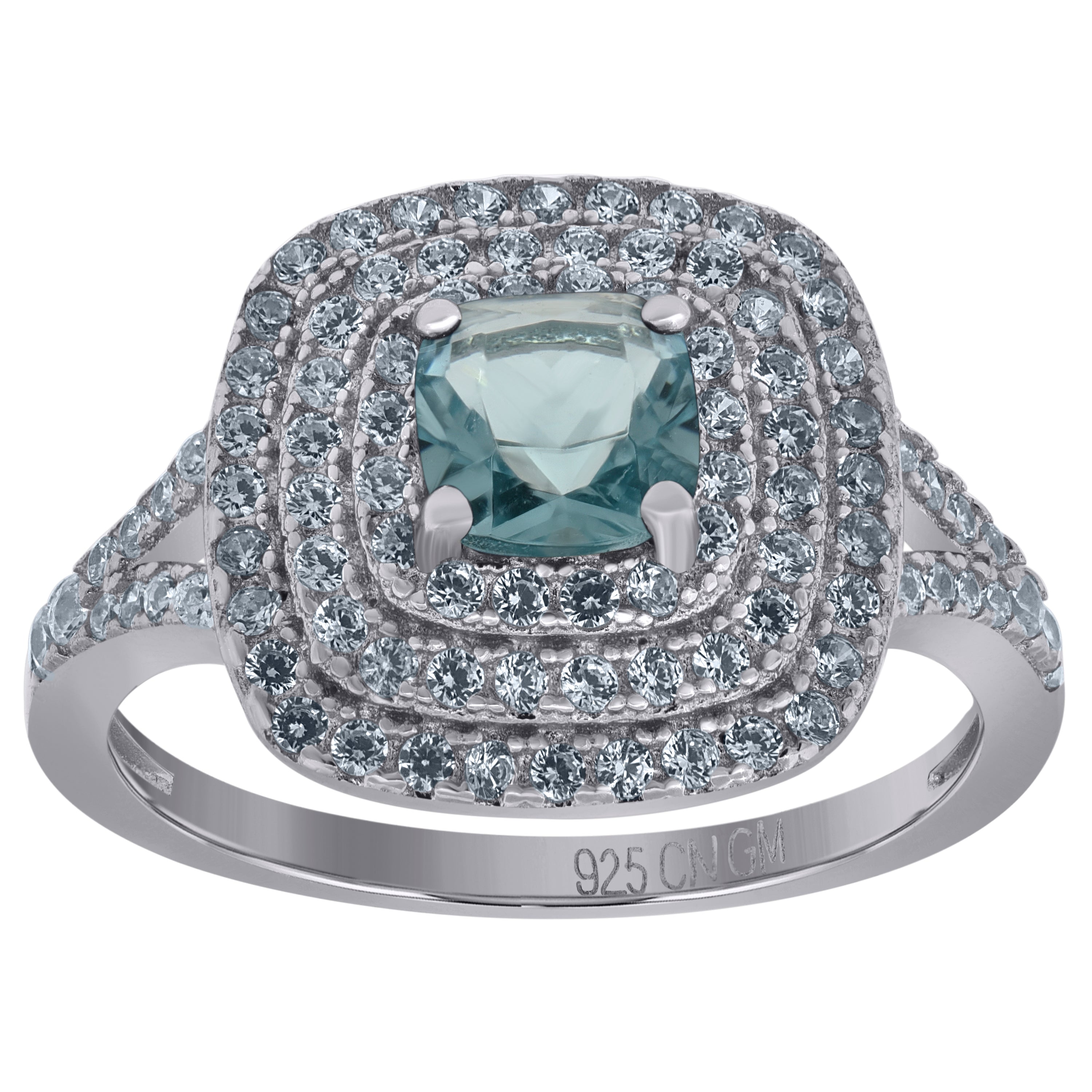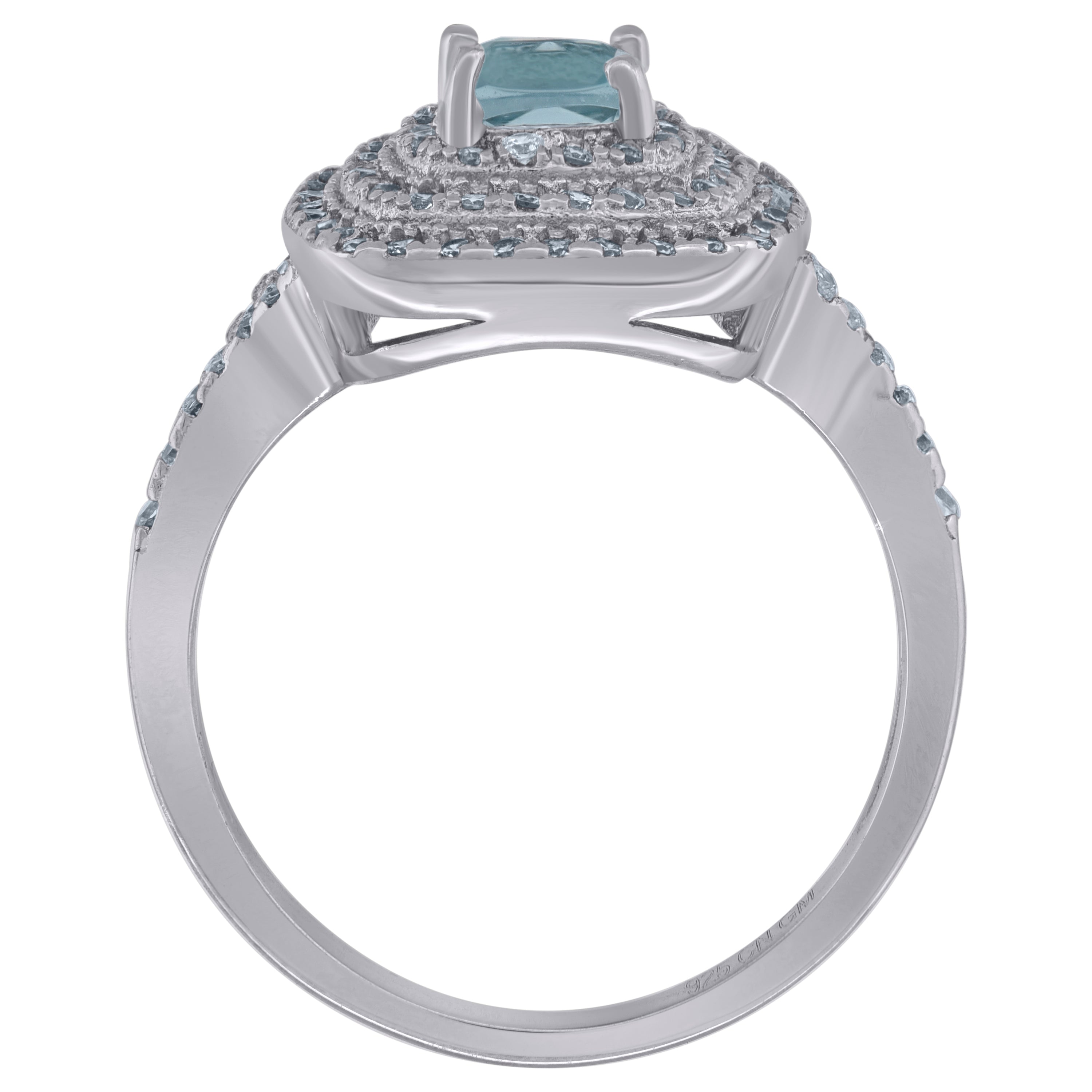 925 Sterling Silver Womens Aqua Princess Cut Cubic Zirconia Fashion Ring Size 8