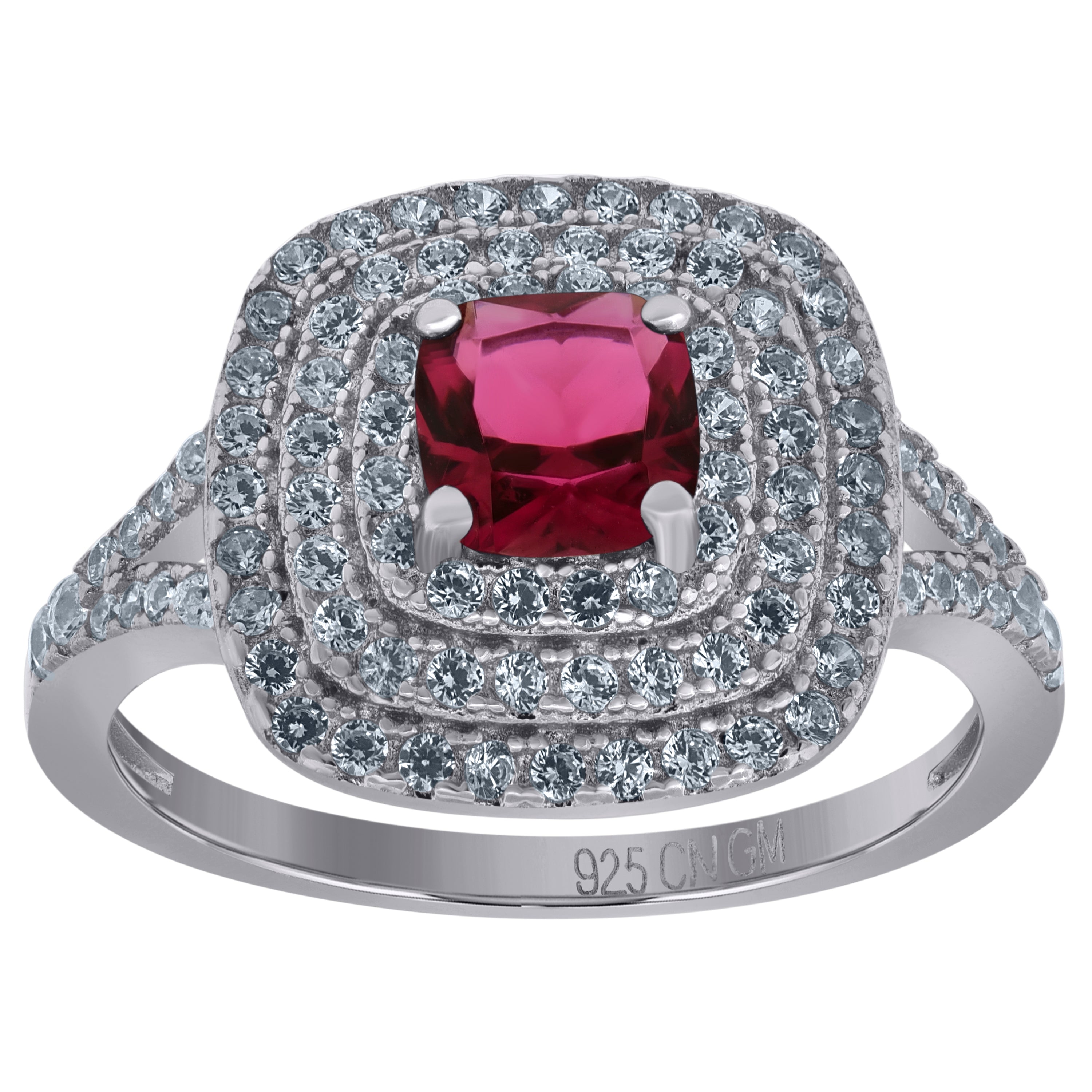 925 Sterling Silver Womens Red Princess Cut Cubic Zirconia Fashion Ring Size 9