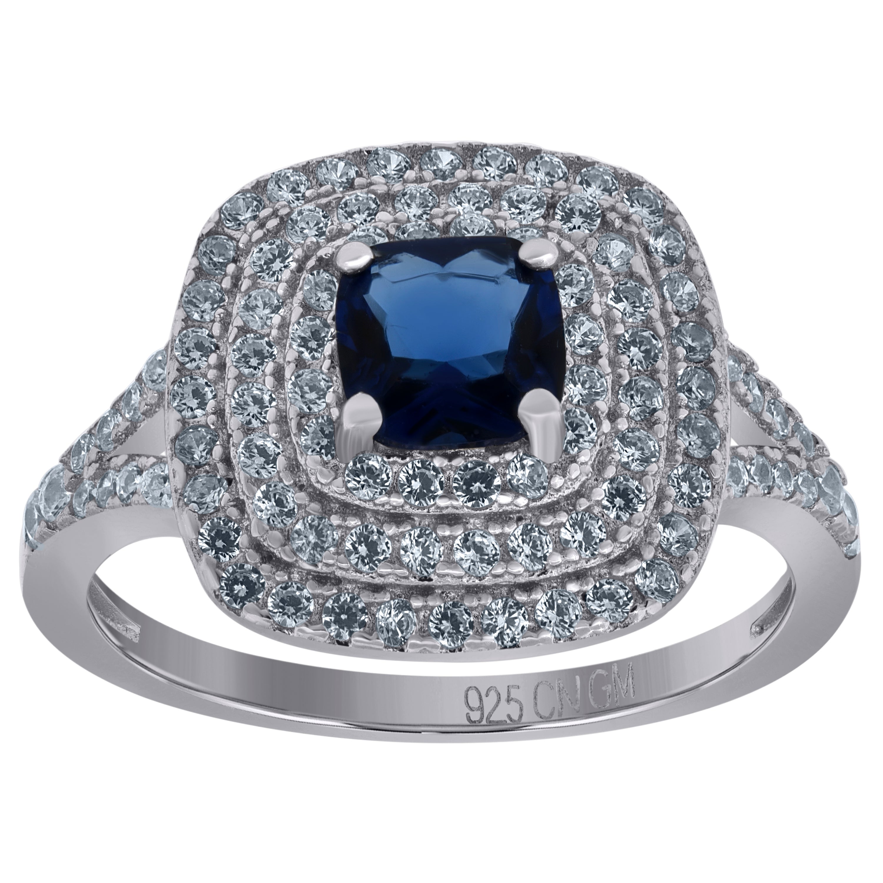 925 Sterling Silver Womens Royal Blue Princess Cut Cubic Zirconia Fashion Ring Size 9
