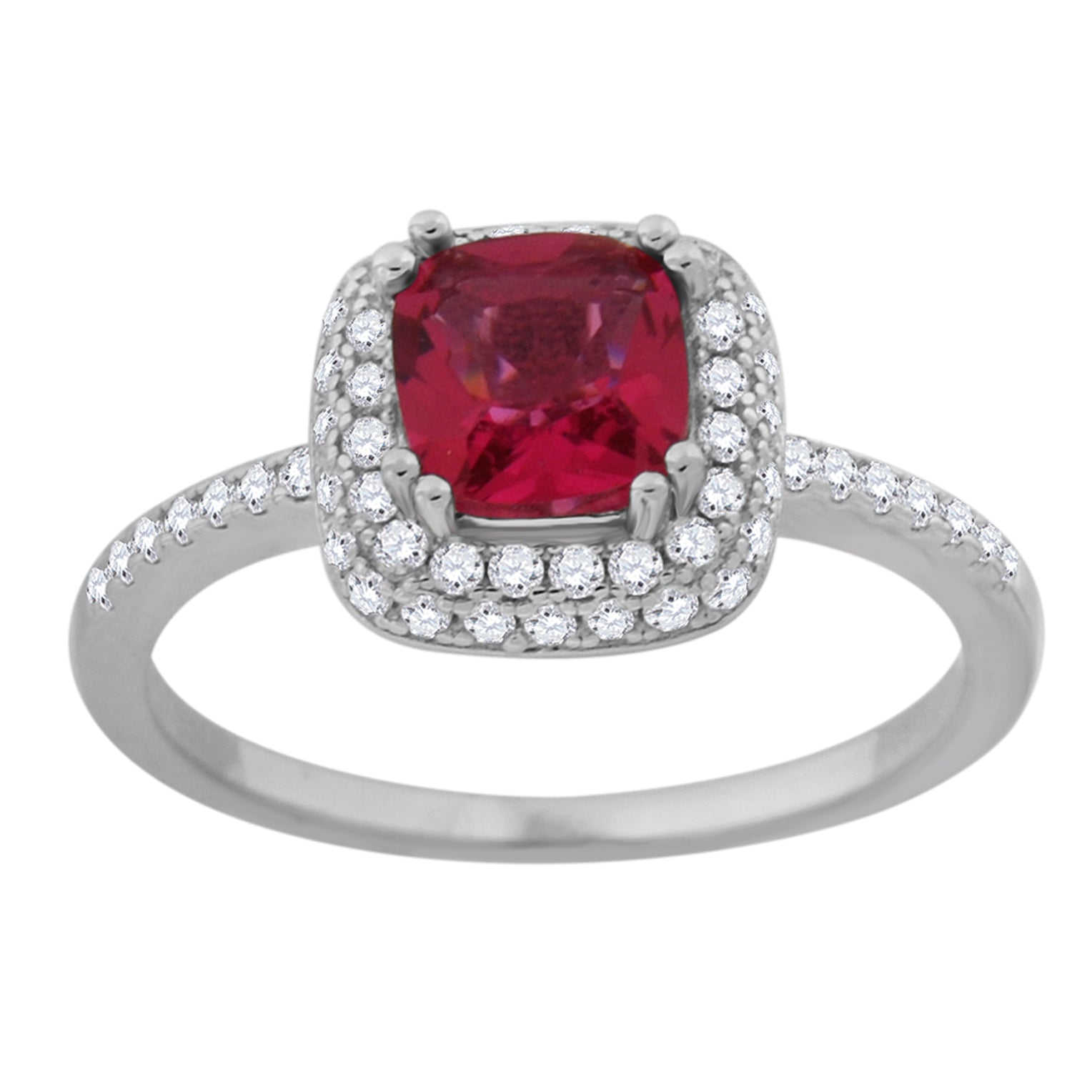 925 Sterling Silver Womens Red Cubic Zirconia Halo Ring