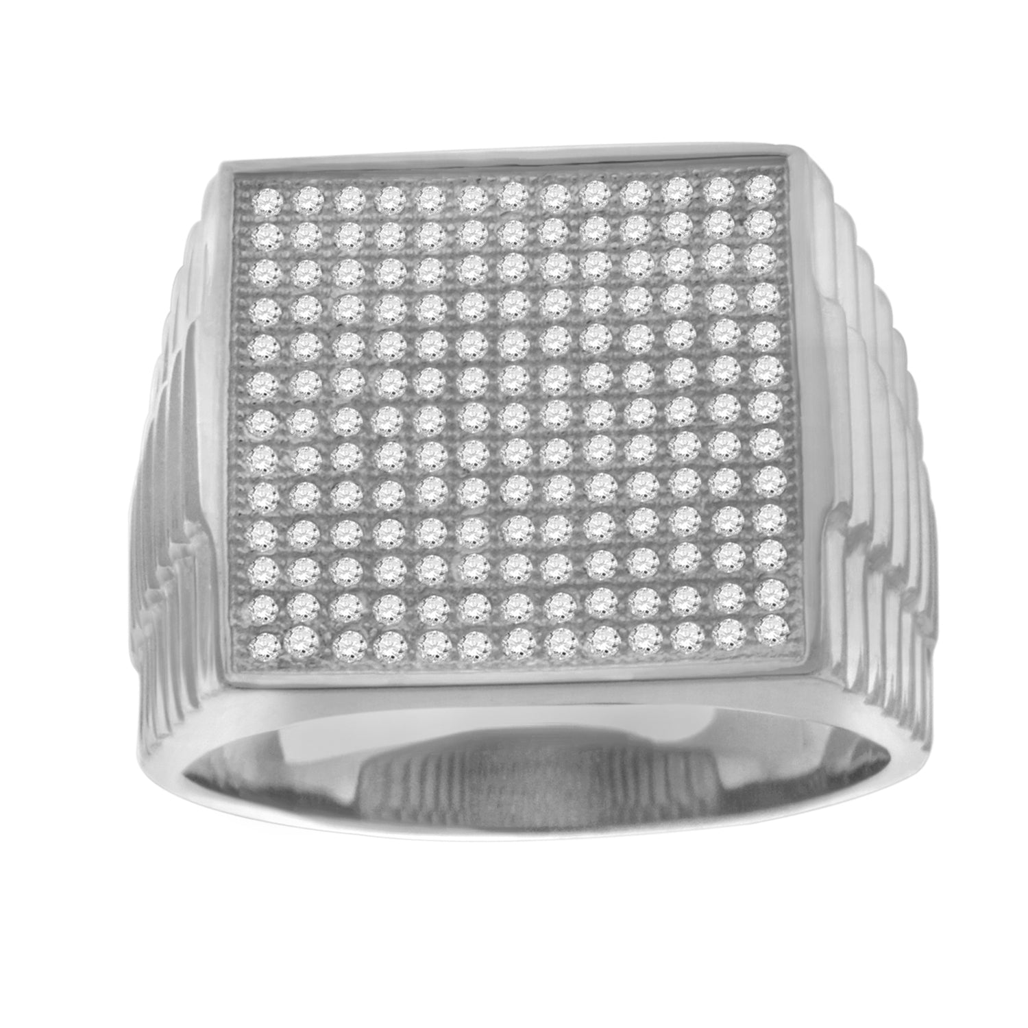 925 Sterling Silver Mens Cubic Zirconia Square Engagement Ring