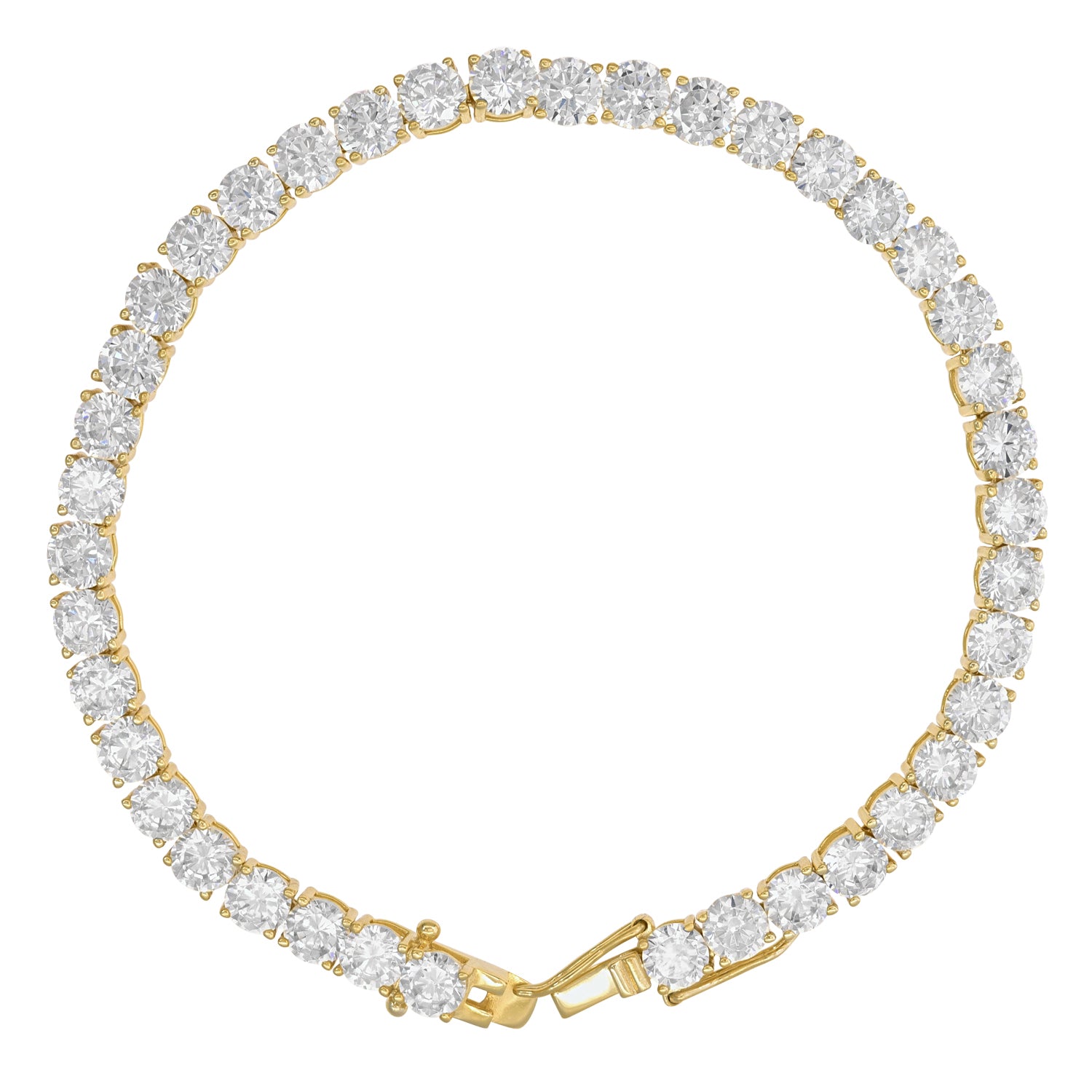 925 Sterling Silver Yellow-Tone Women Cubic Zirconia Tennis 3mm Bracelet Size 7 Inches