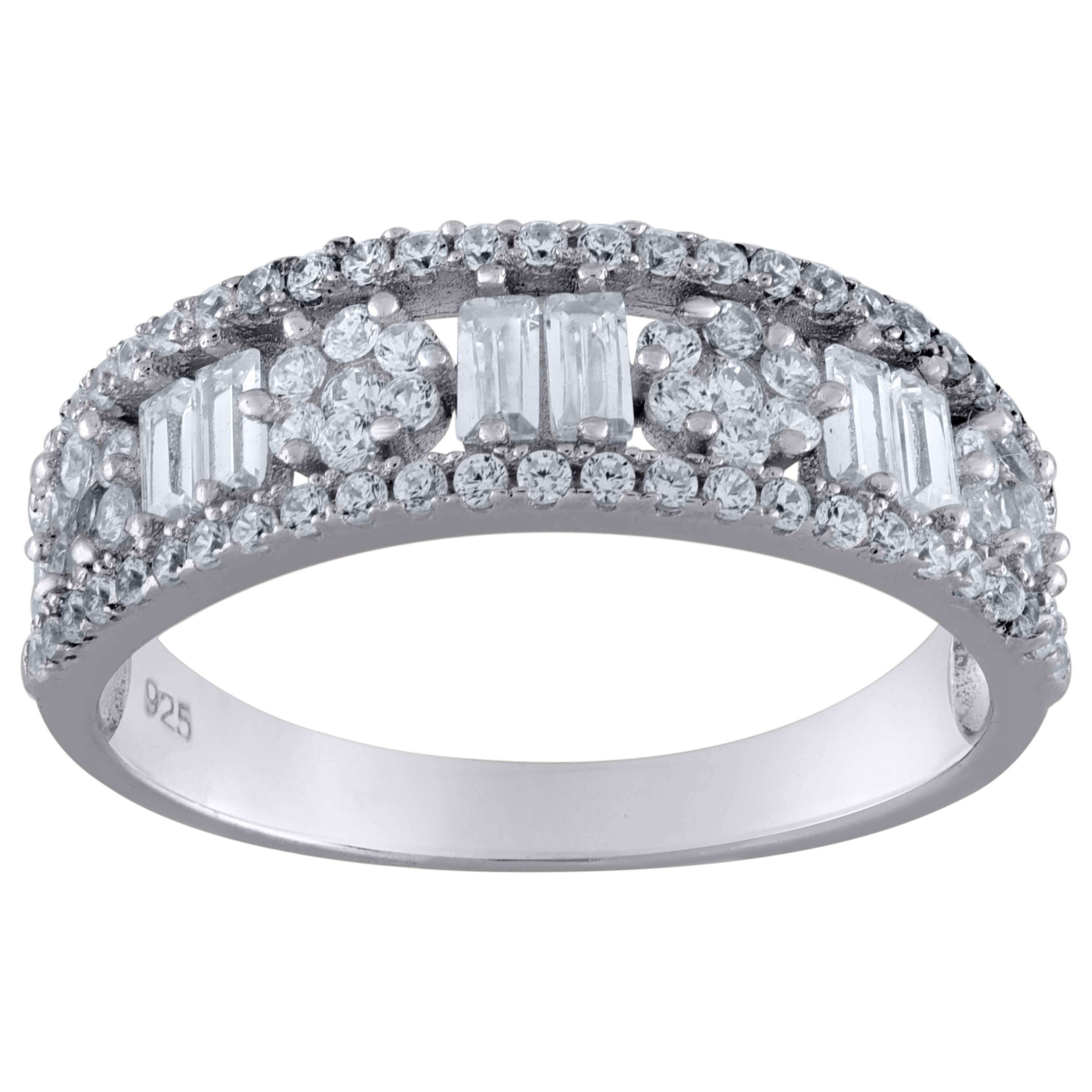 925 Sterling Silver Womens Cubic Zirconia Fashion Floral Wedding Band Ring Size 9