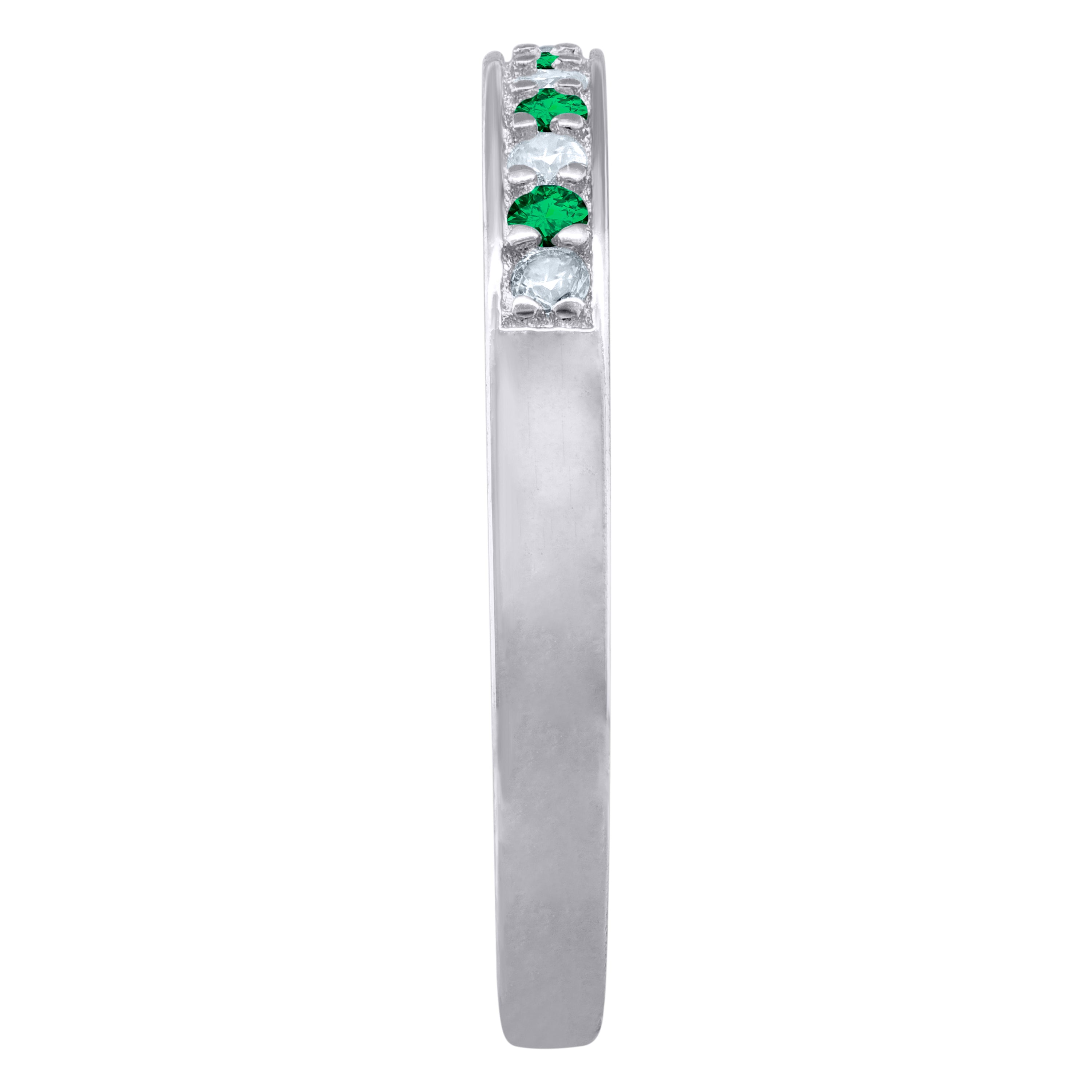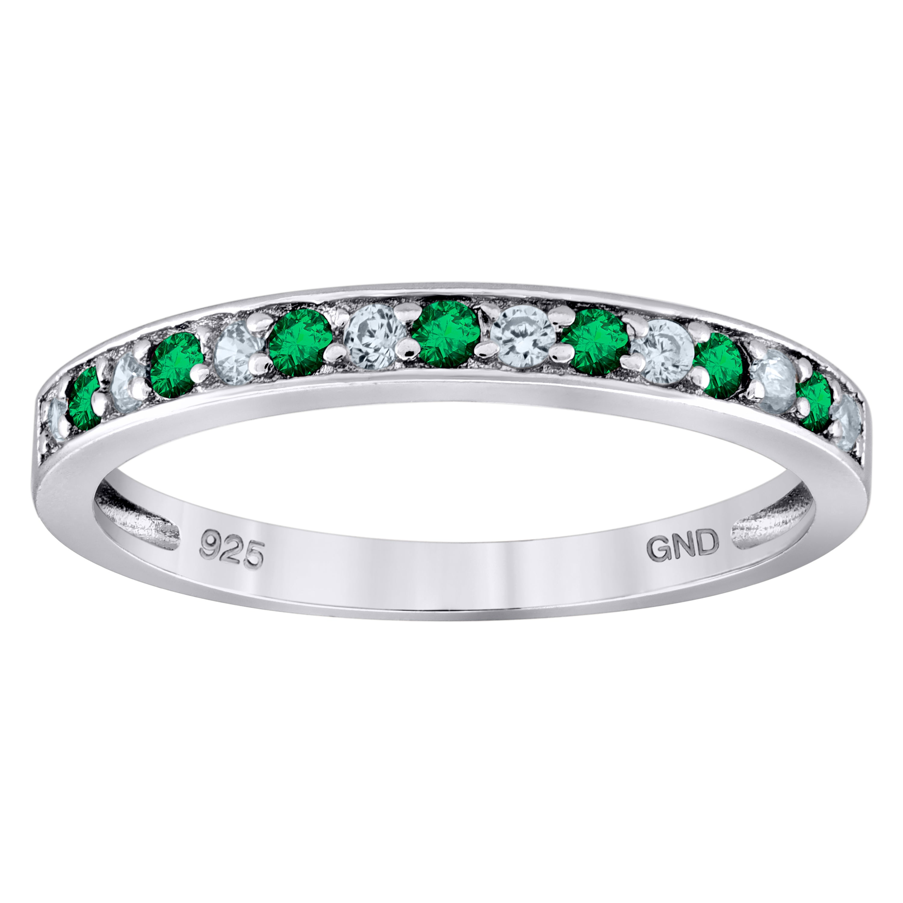925 Sterling Silver Womens White Green Cubic Zirconia Semi Eternity Stackable Wedding Band Ring Size 7