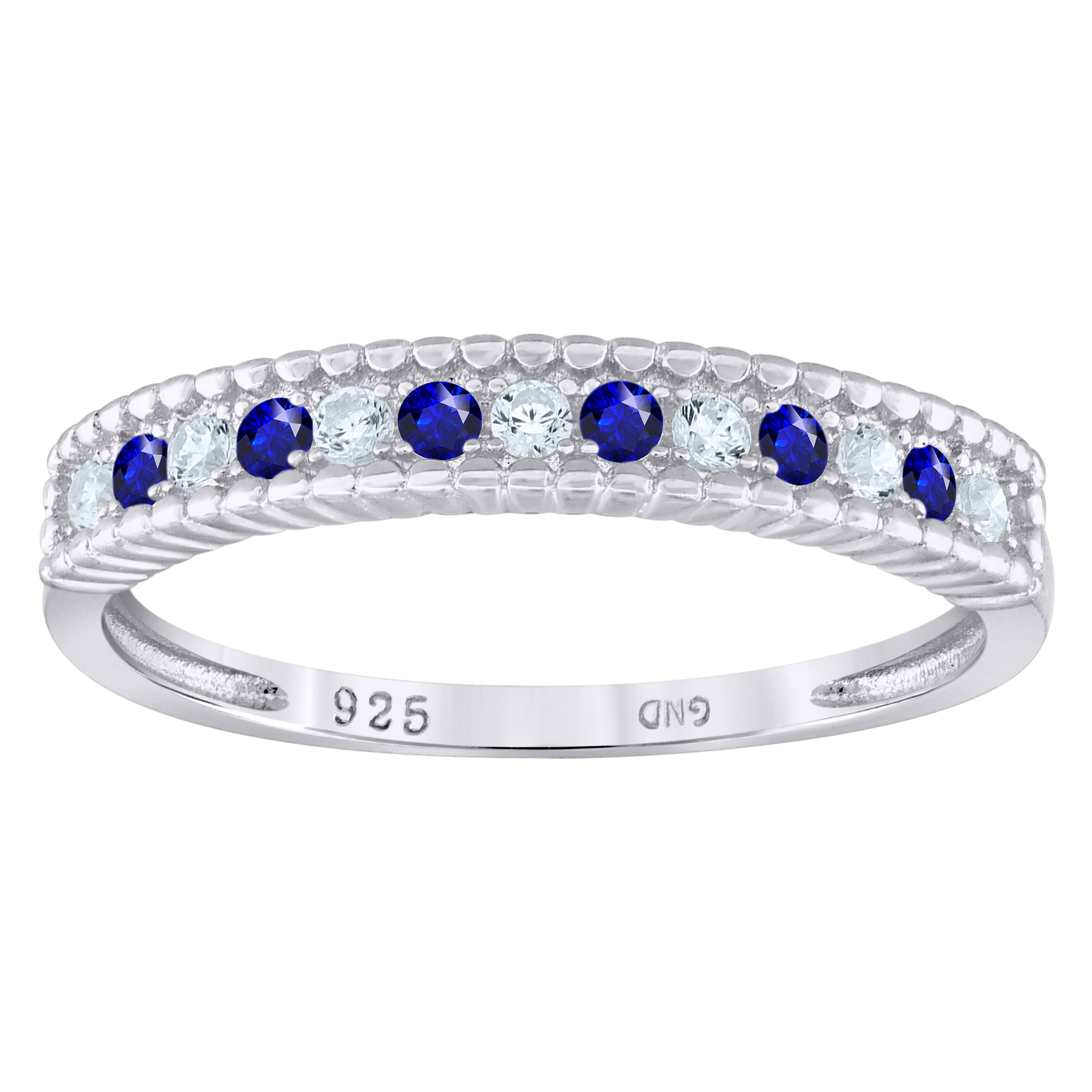 925 Sterling Silver Womens White Royal Blue Cubic Zirconia Semi Eternity Stackable Wedding Band Ring Size 8