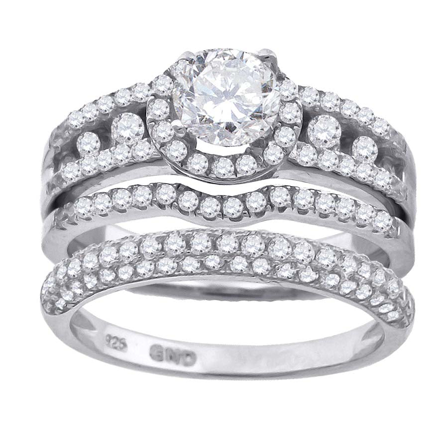 925 Sterling Silver His & Hers Cubic Zirconia Halo Trio Ring Set Size 6