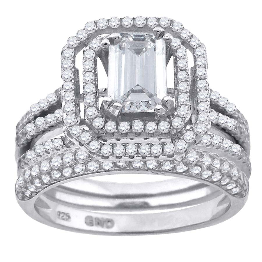 925 Sterling Silver Womens Cubic Zirconia Halo Bridal Trio Set Ring Size 8