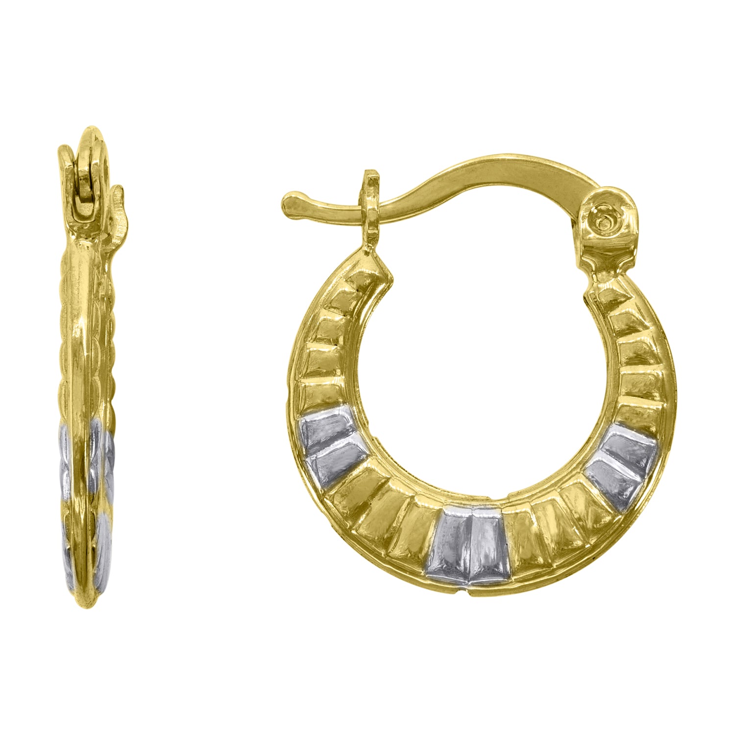 10kt Gold Two-tone Womens 13.6mm Hinged Hoops Huggies