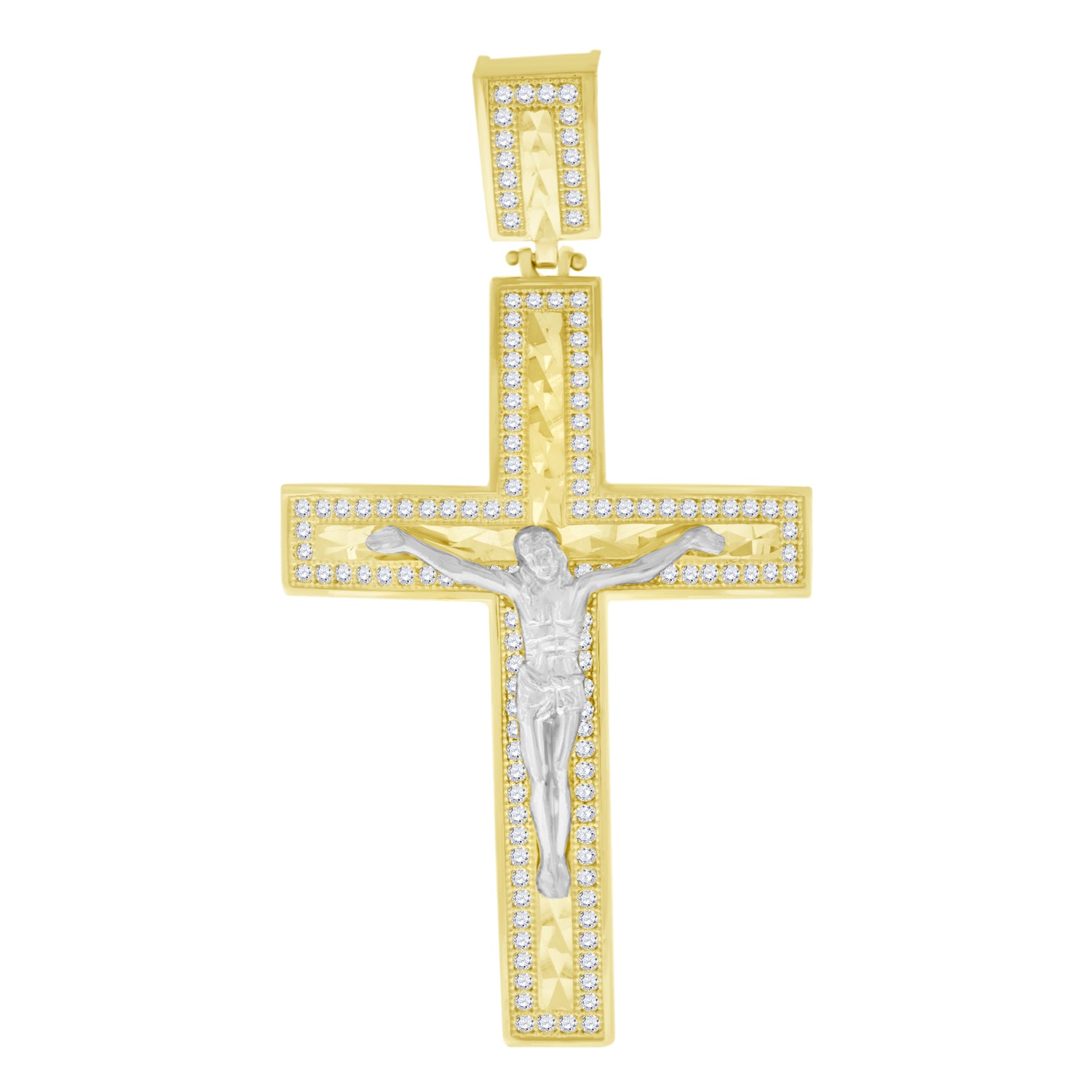 10kt Two-tone Gold Unisex Cubic-zirconia Cubic Zirconia Crucifix Cross Religious Charm Pendant