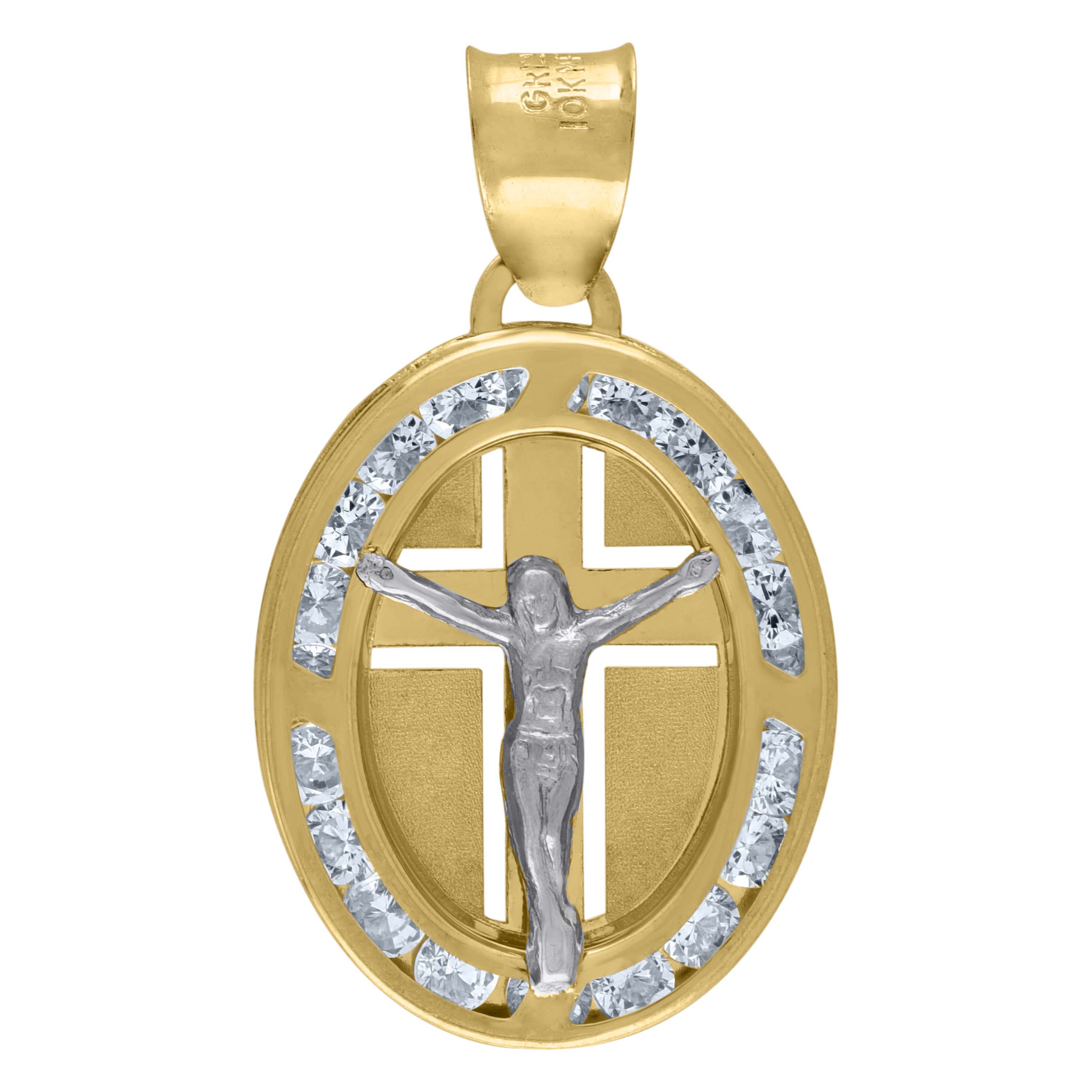 10kt Two-Tone Gold Unisex Cubic Zirconia Cubic-zirconia Crucifix Cross Religious Oval Charm Pendant